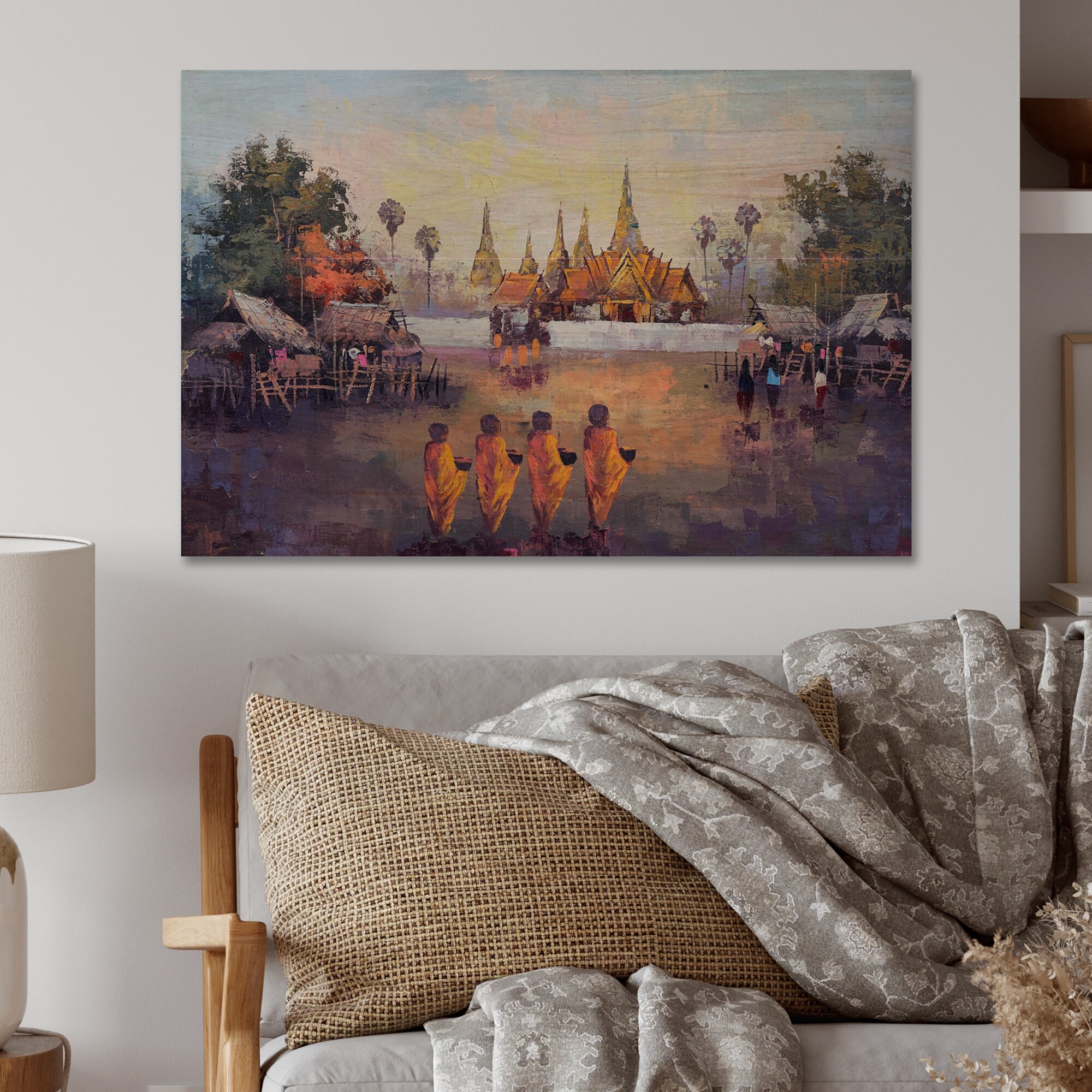 Designart 'Vintage Asian Buddhist Life Landscape' Vintage Wood Wall Art Décor - Natural Pine Wood