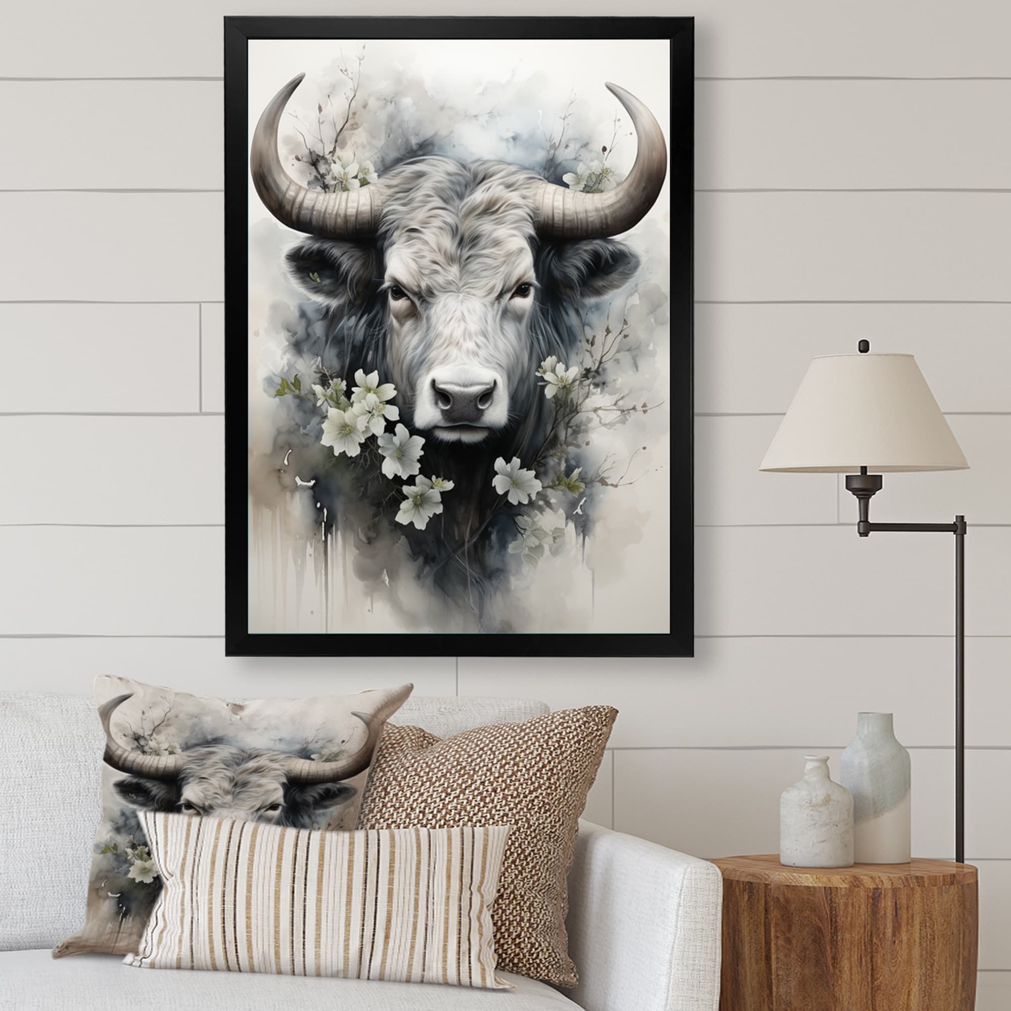 Designart "Asian Art Cow Sumi IV" Asian Art Framed Canvas Art Print