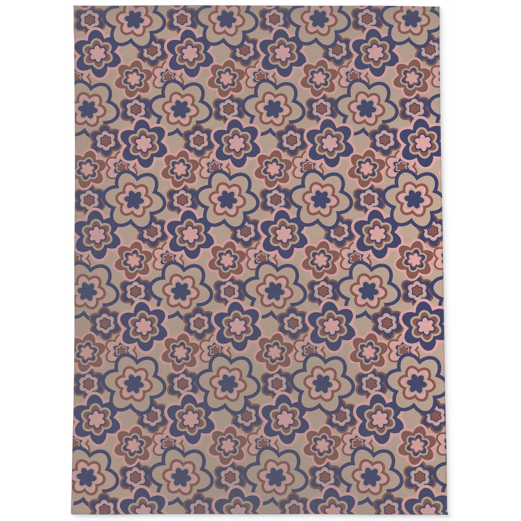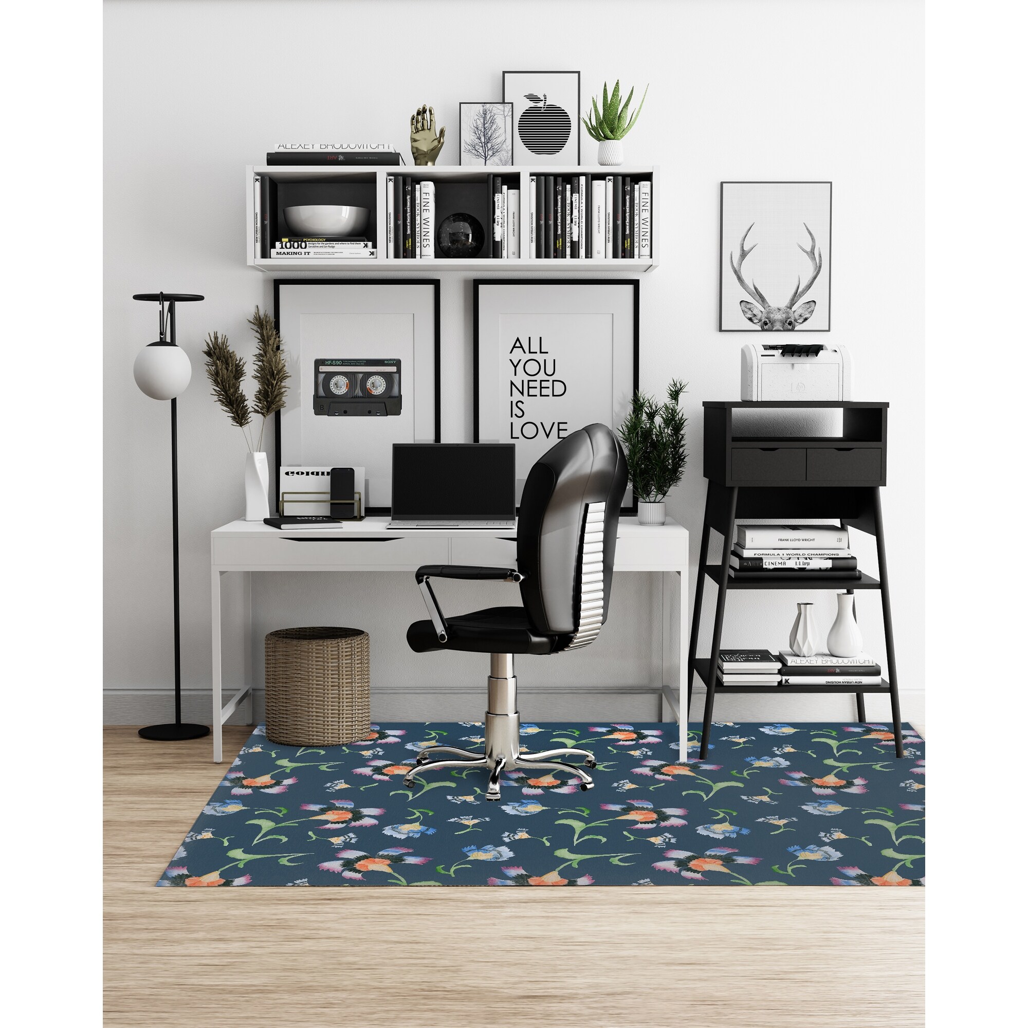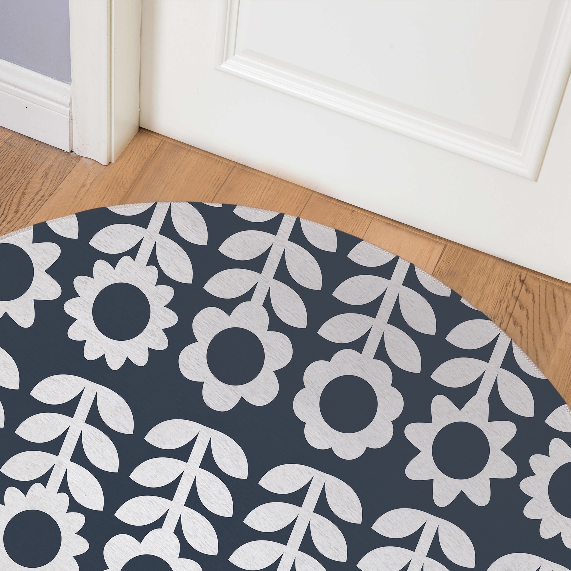 RETRO FLOWER GARDEN NAVY Indoor Floor Mat By Becky Bailey