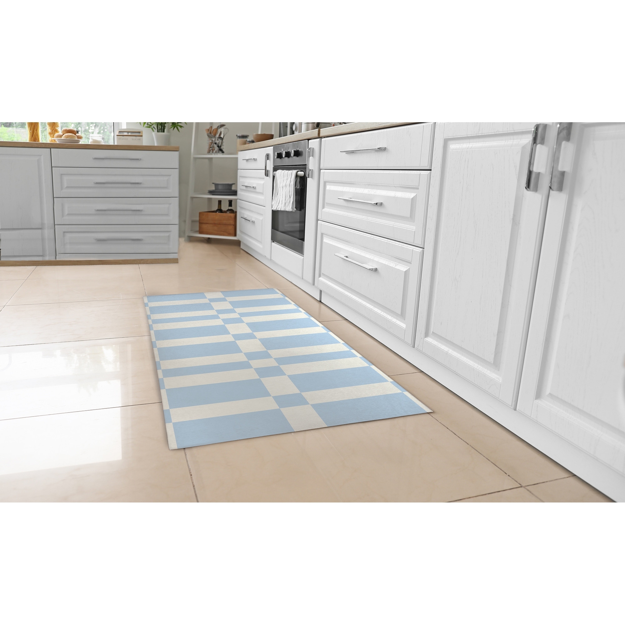 LONG CHECKS BLUE Kitchen Mat By Becky Bailey