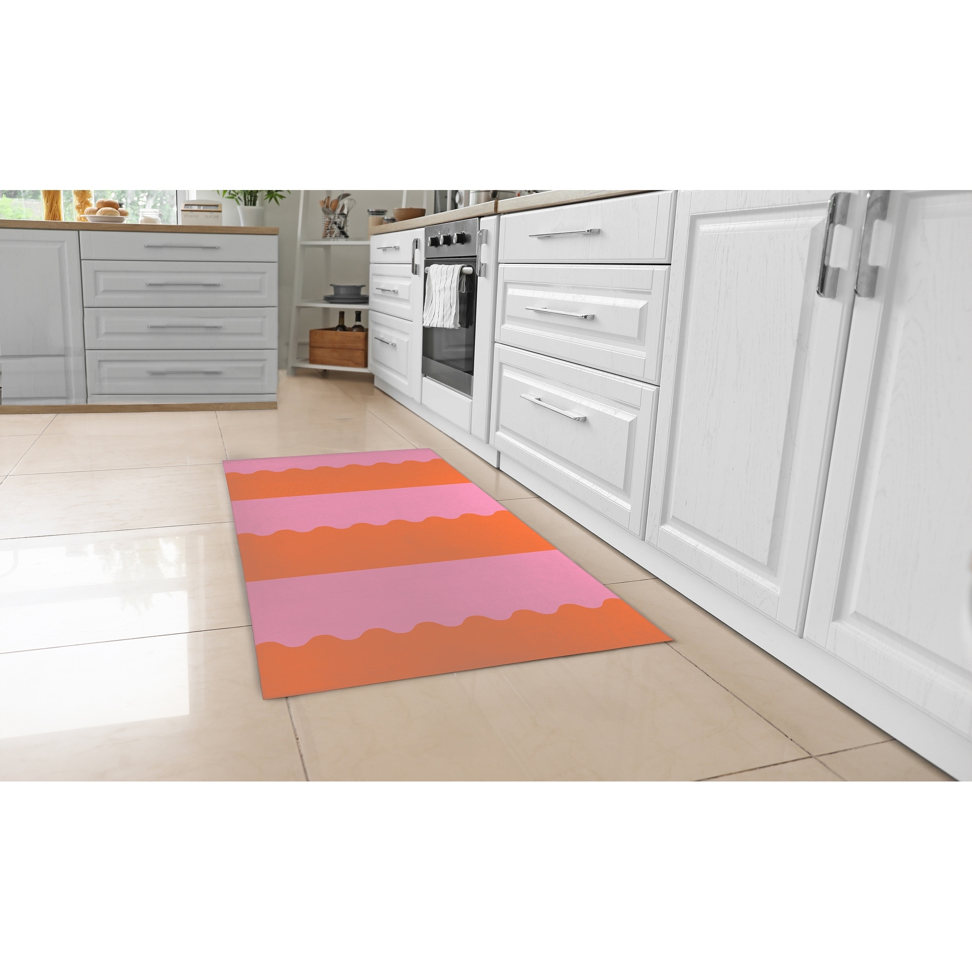 WAVY HORIZON PINK AND ORANGE Kitchen Mat By Becky Bailey