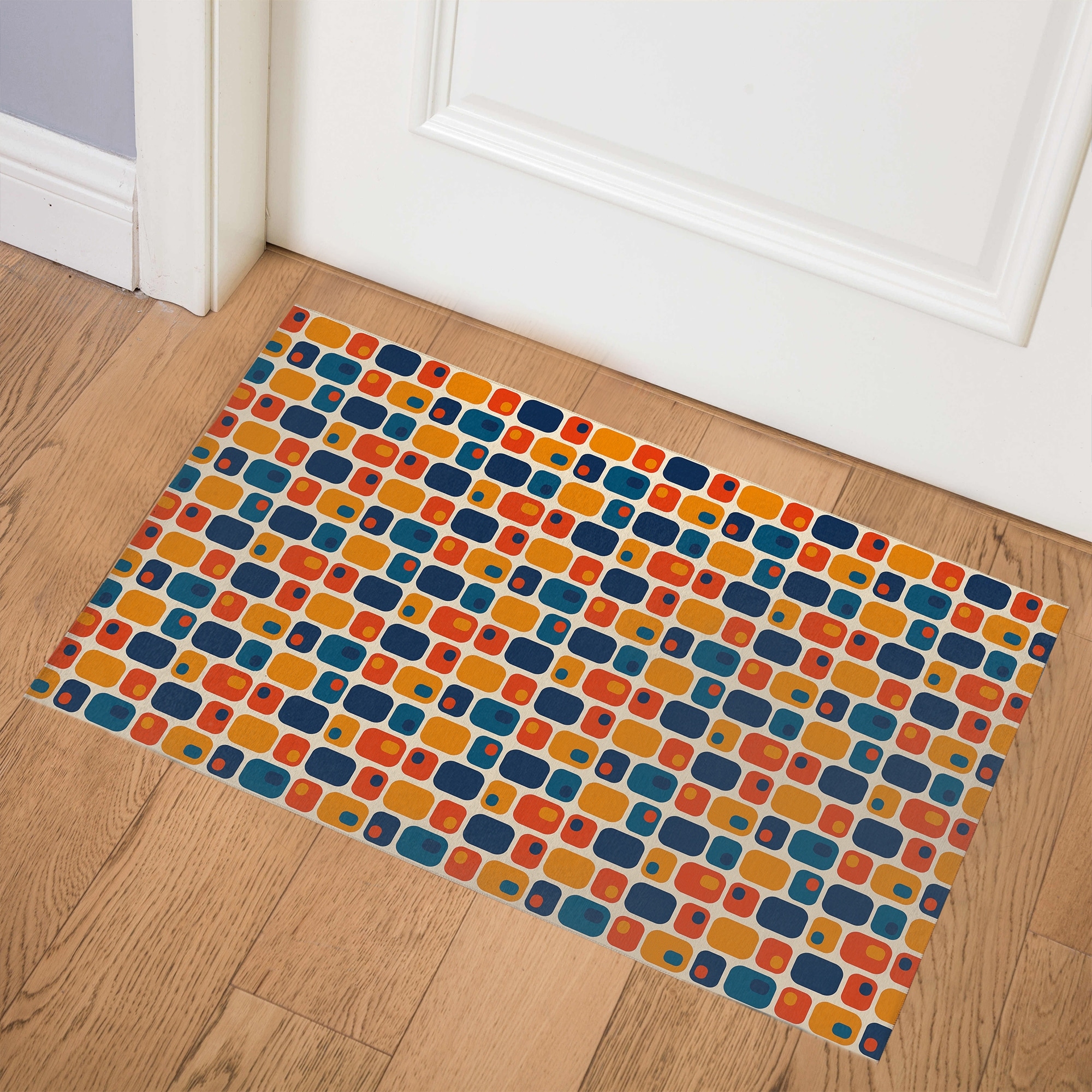 ROUNDED RECTANGLES BLUE Indoor Floor Mat By Becky Bailey