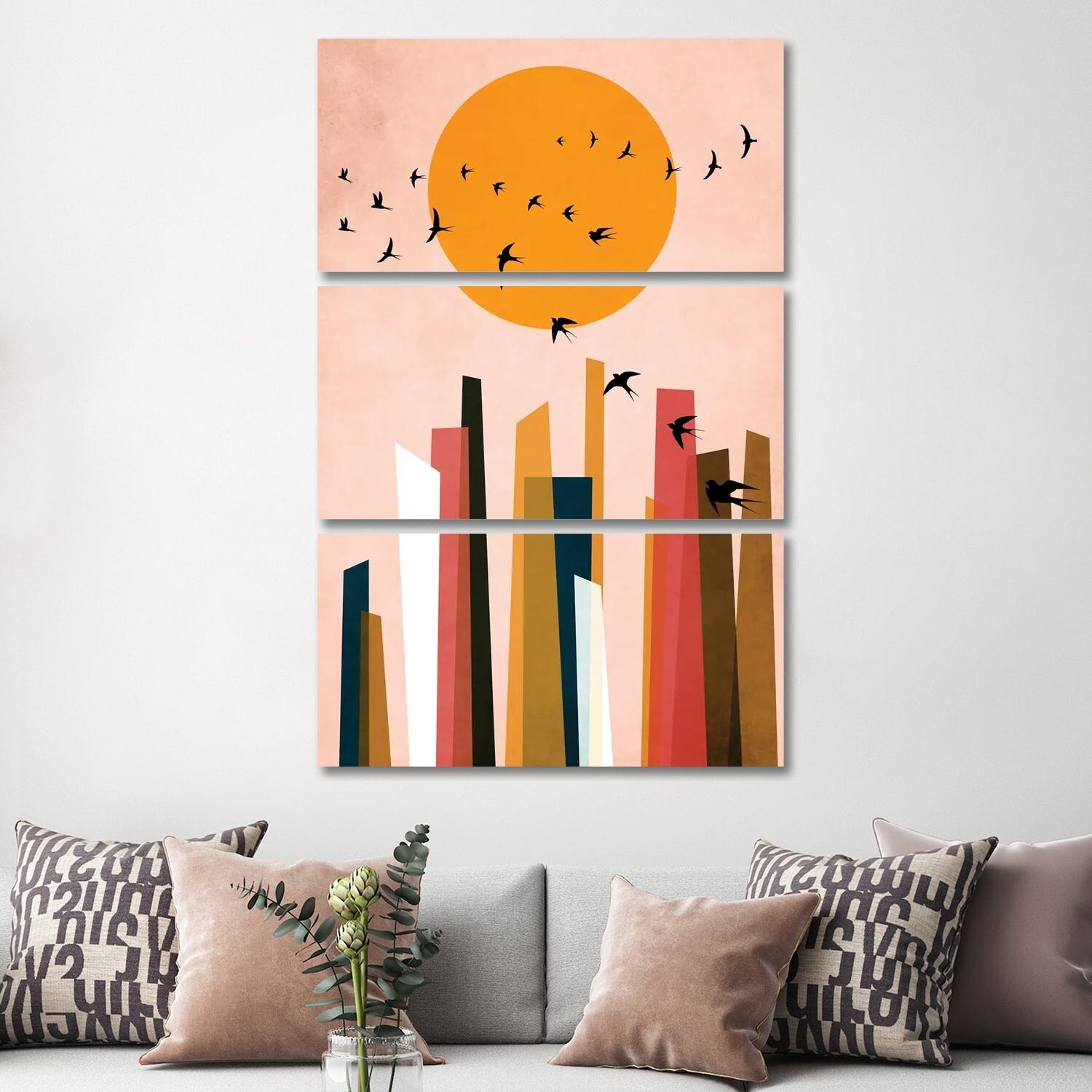 iCanvas "Dancing Birds" by Kubistika 3-Piece Wall Art Set