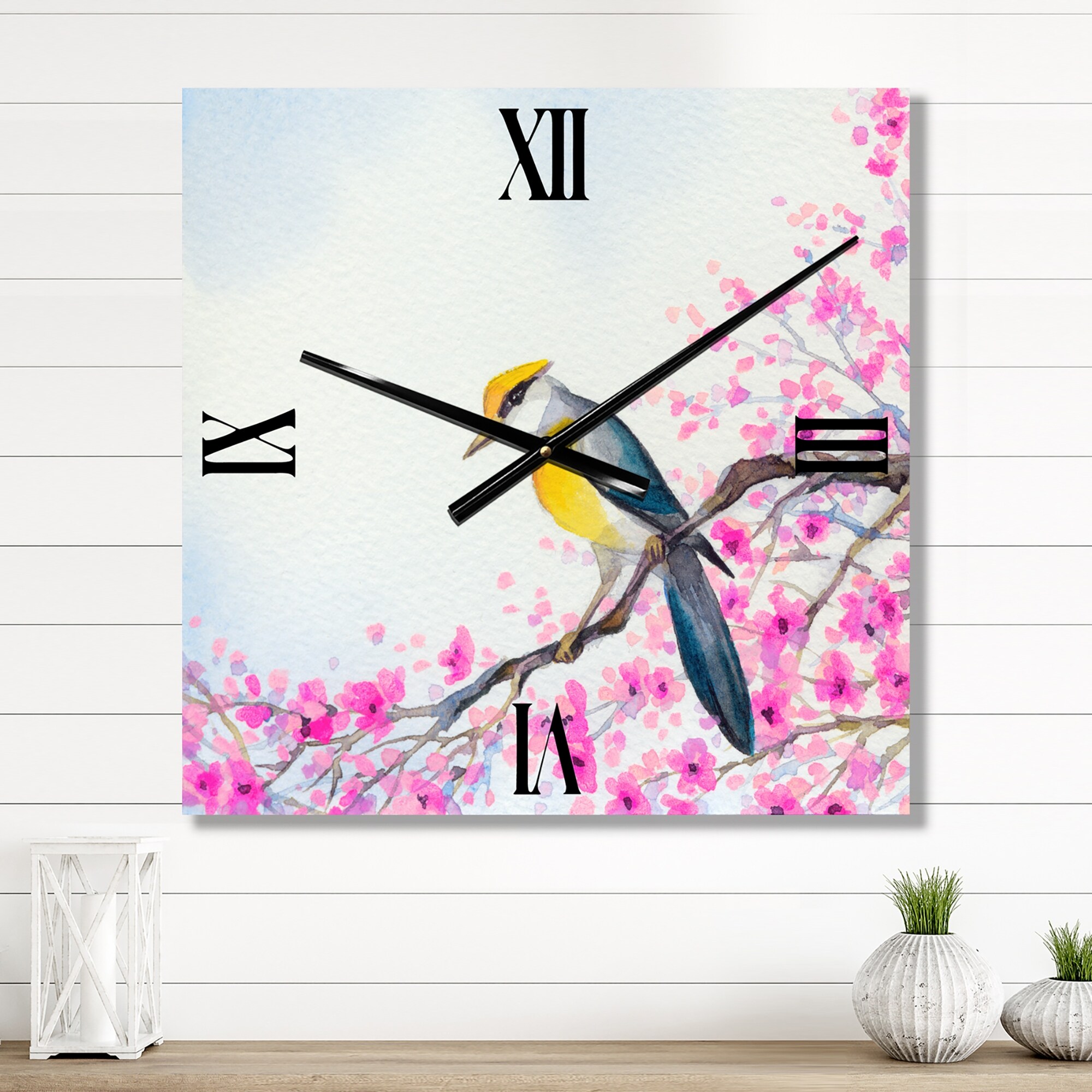 Designart 'Beautiful Bird on Flowering Branch' Traditional Metal Wall Clock