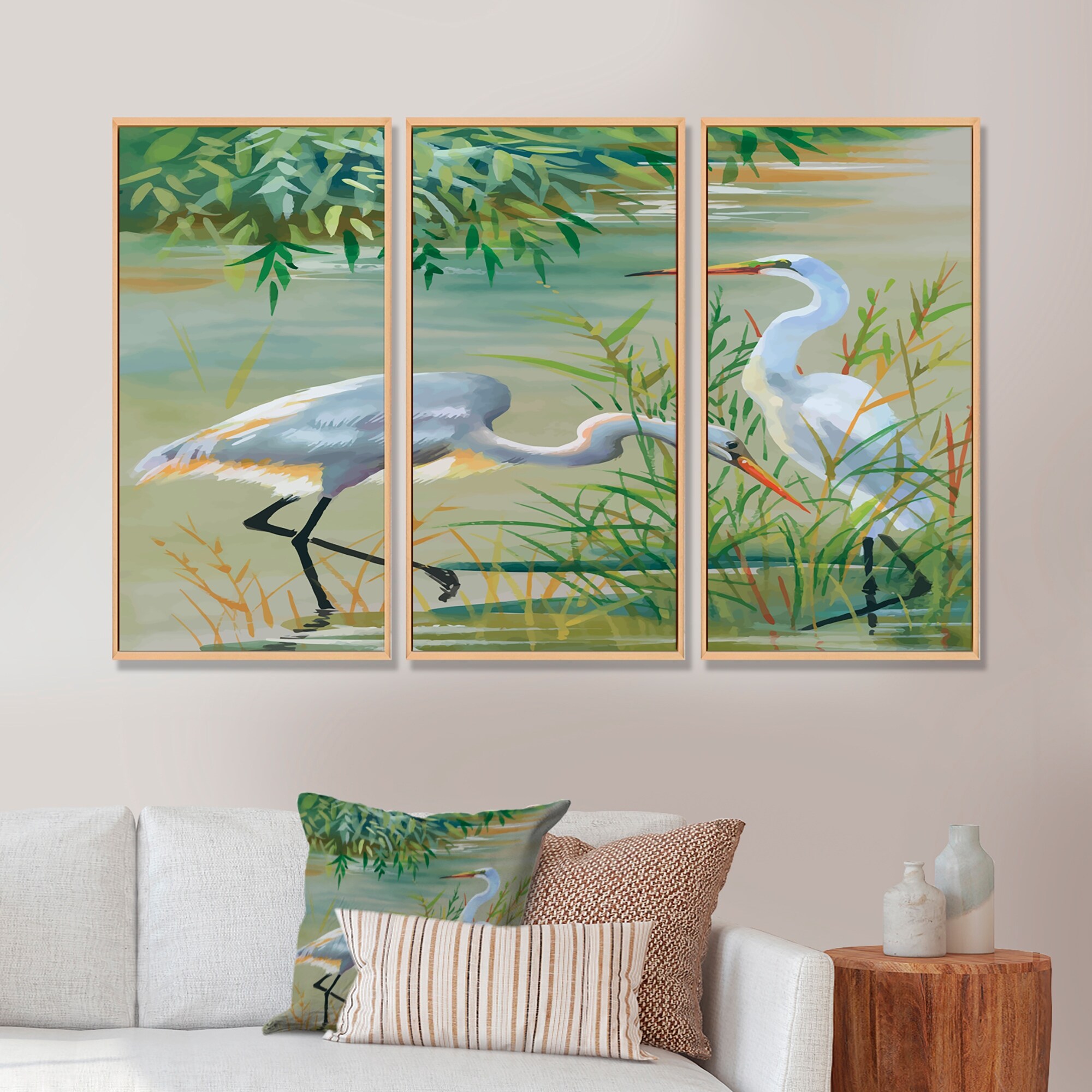Designart "Heron Birds I" Traditional Framed Art Set of 3 - 4 Colors of Frames