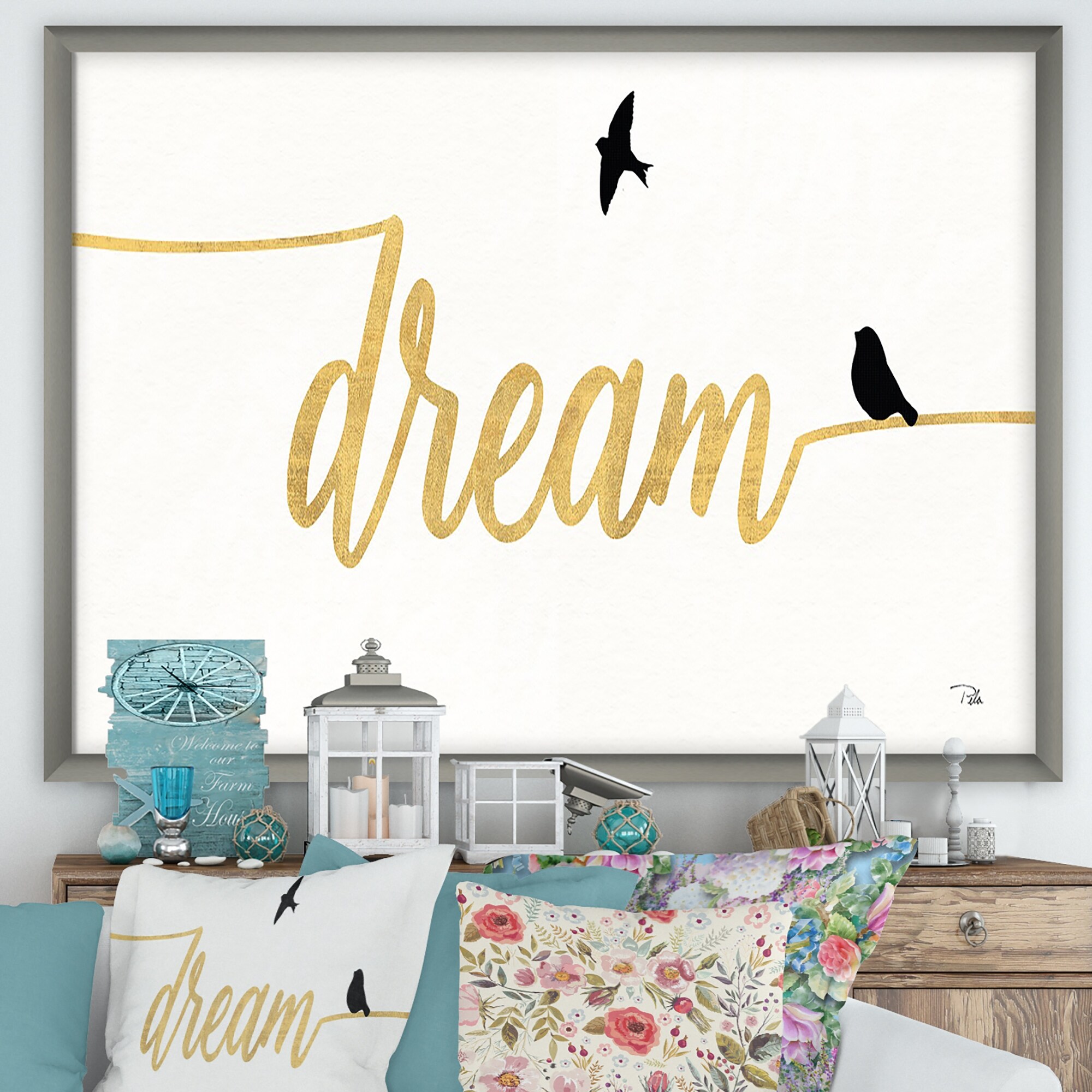 Designart "Family of Birds on Gold Words II" Cottage Framed Art Print