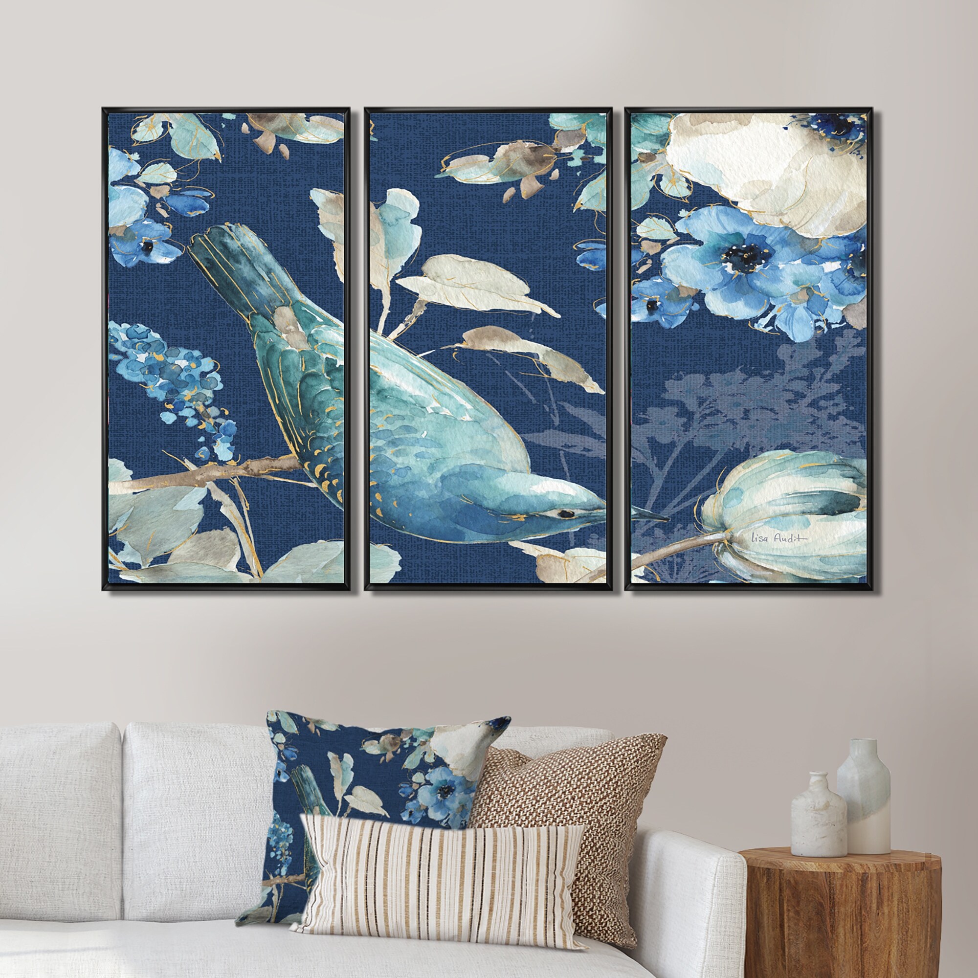 Designart "Indigold Bird Cottage Family IV" Traditional Framed Wall Art Set of 3 - 4 Colors of Frames