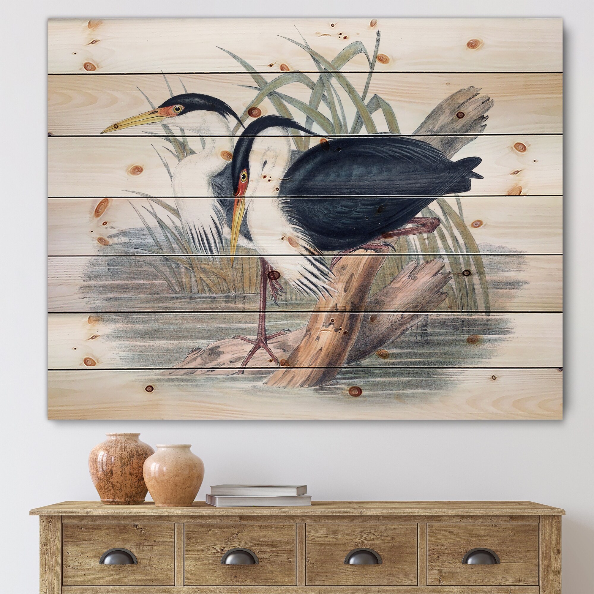 Designart 'Vintage Bird Life II' Traditional Print on Natural Pine Wood