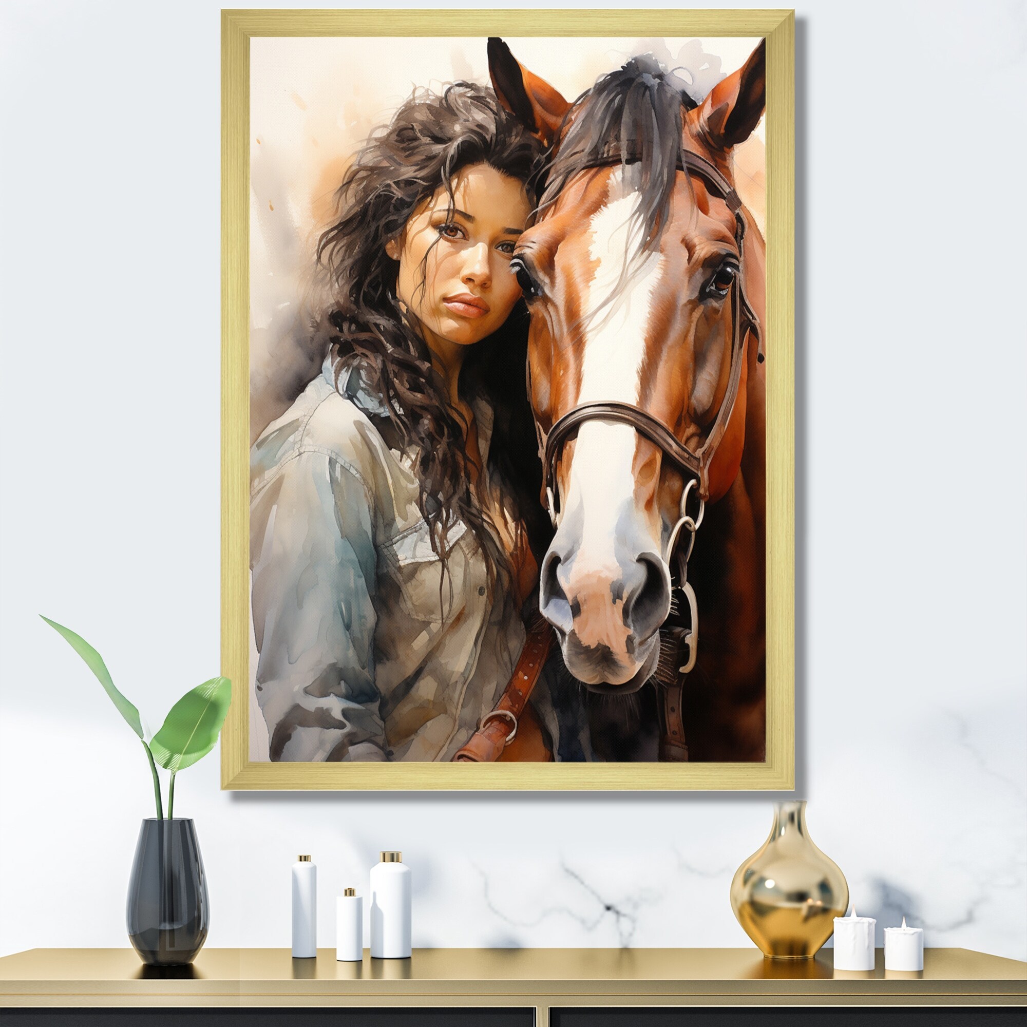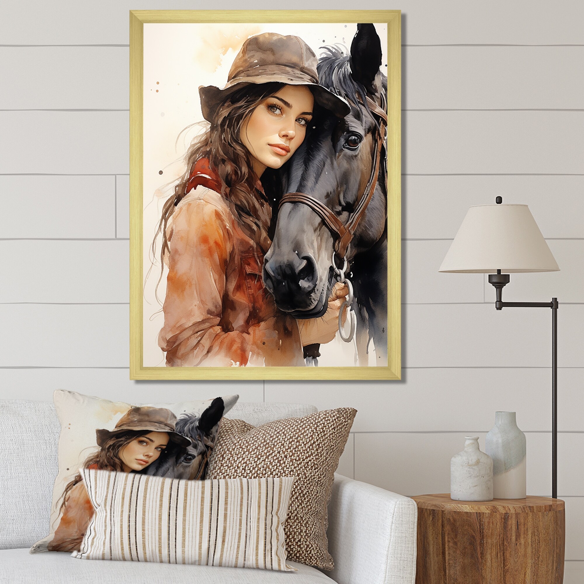 Designart "Cowgirls And Horse Bond II" Cowgirls Framed Wall Art Living Room