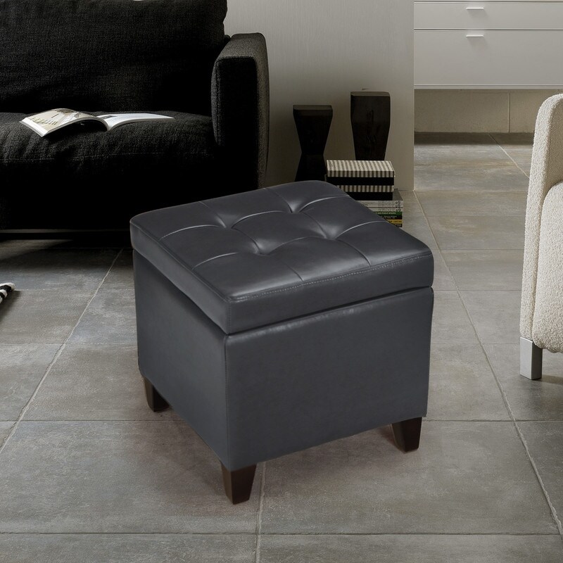 Adeco Bonded Leather Square Tufted Cubic Cube Storage Ottomans