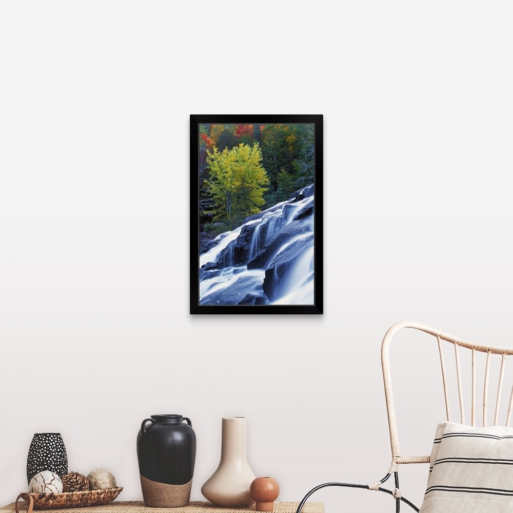 "Rocky Bond Falls, autumn color trees, Michigan" Black Framed Print
