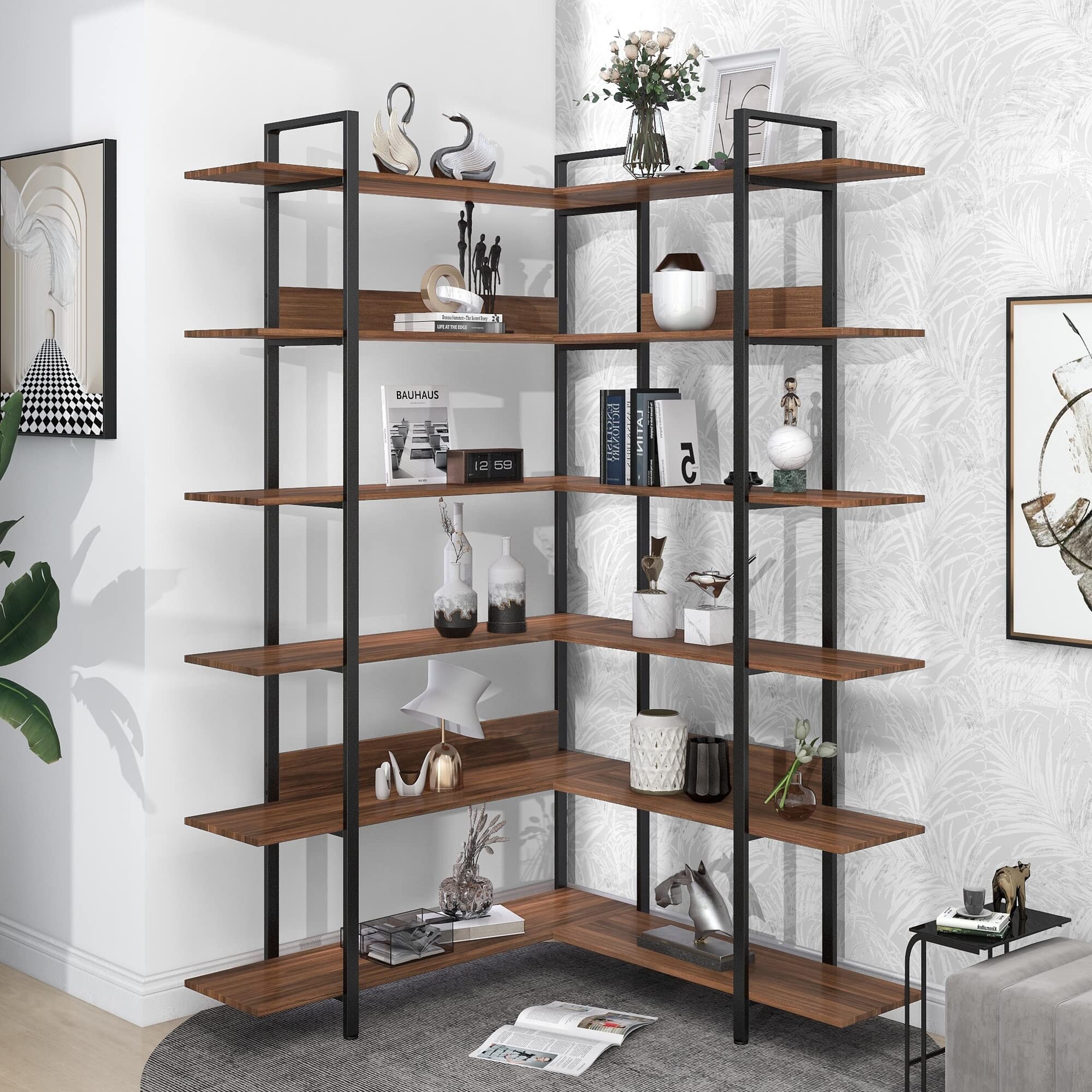 L Shape Industrial 6-tier 7-tier Corner Bookshelf Bookcase with Metal Frame