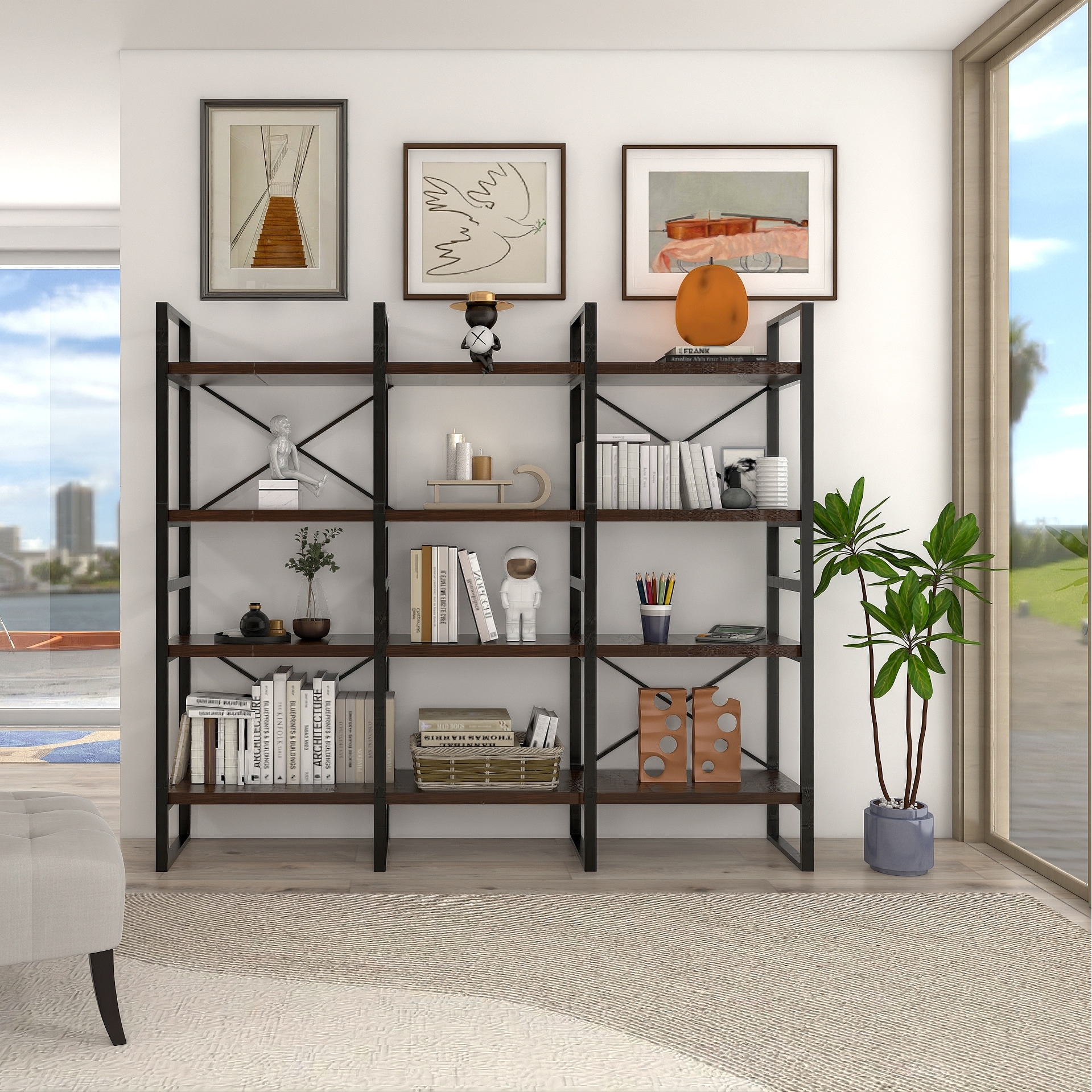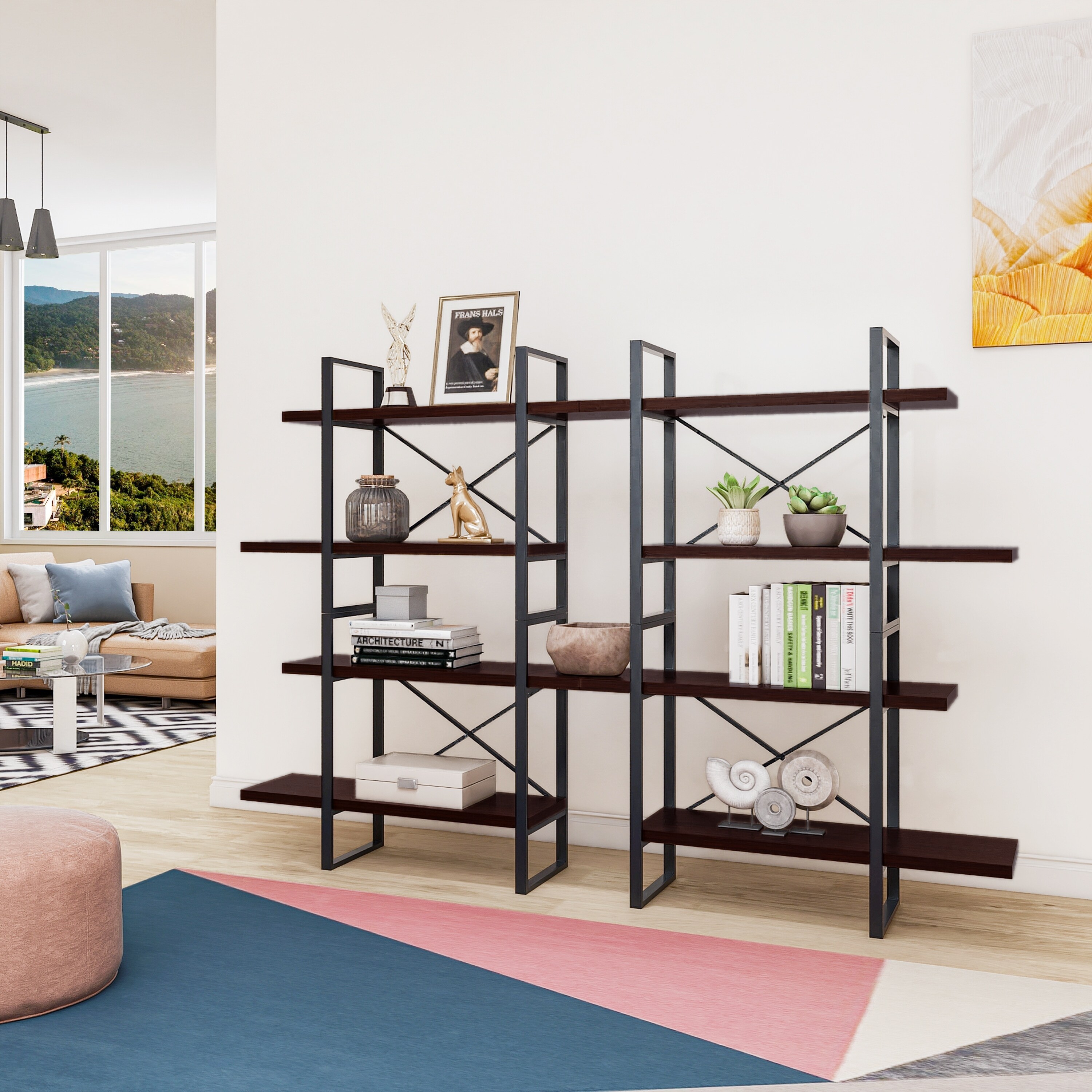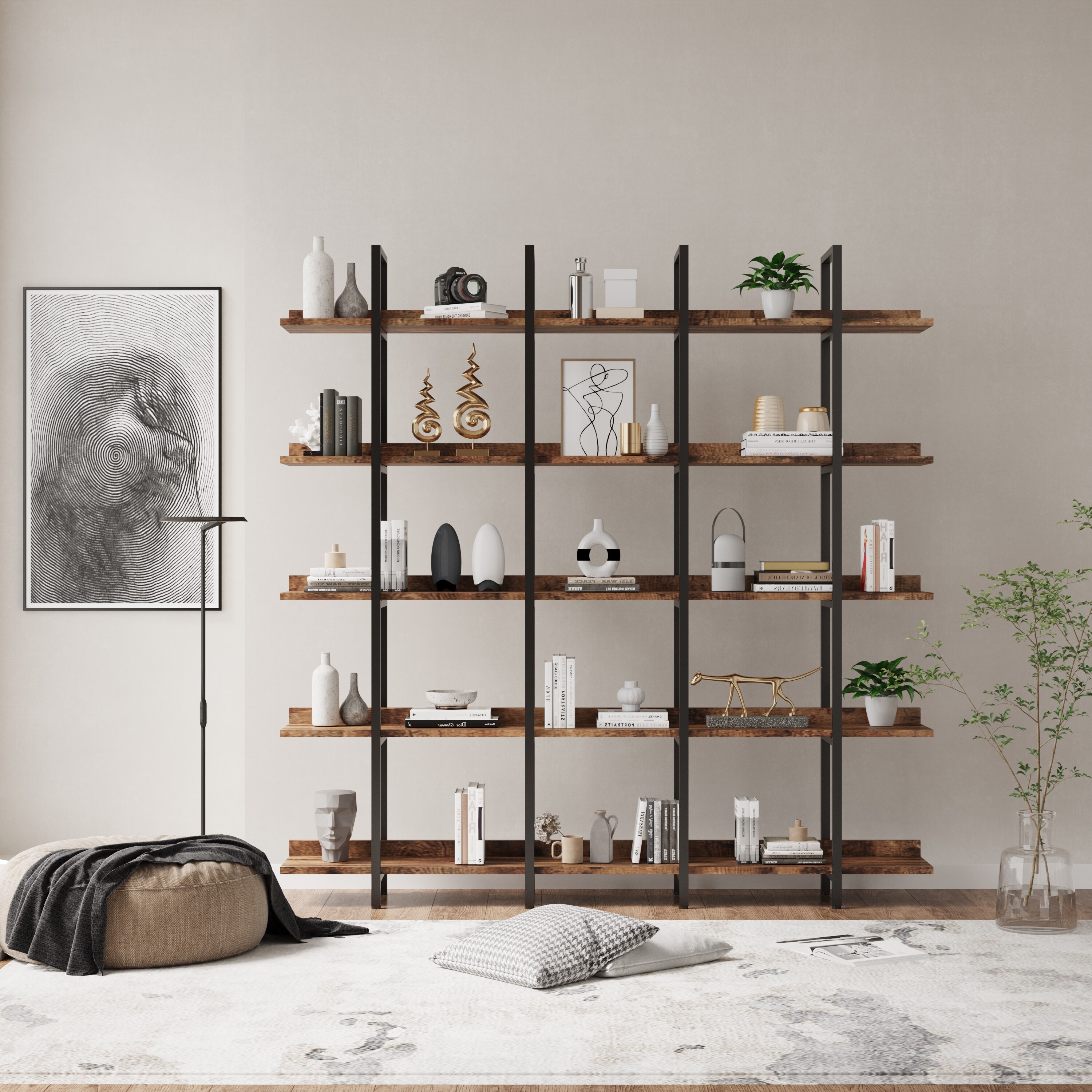 5 Tiers Etagere Large Open Bookshelf Triple Wide Bookcase Retro Brown
