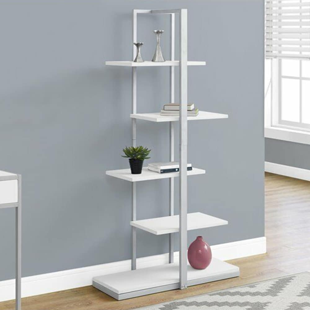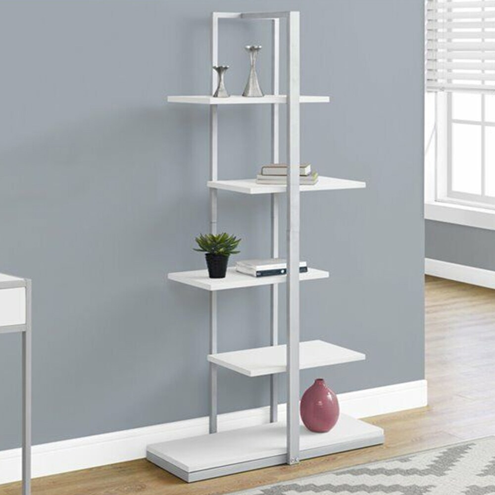 5 Spacious Zig-Zag Style Metal Bookcase White and Silver - 52 x 63