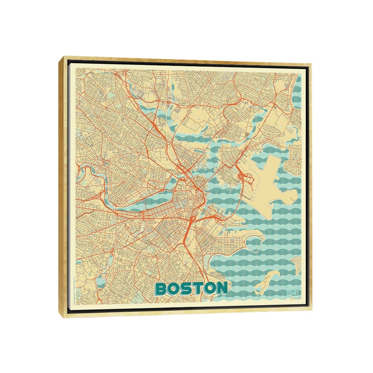 iCanvas "Boston Retro Urban Blueprint Map" by Hubert Roguski Framed Canvas Print