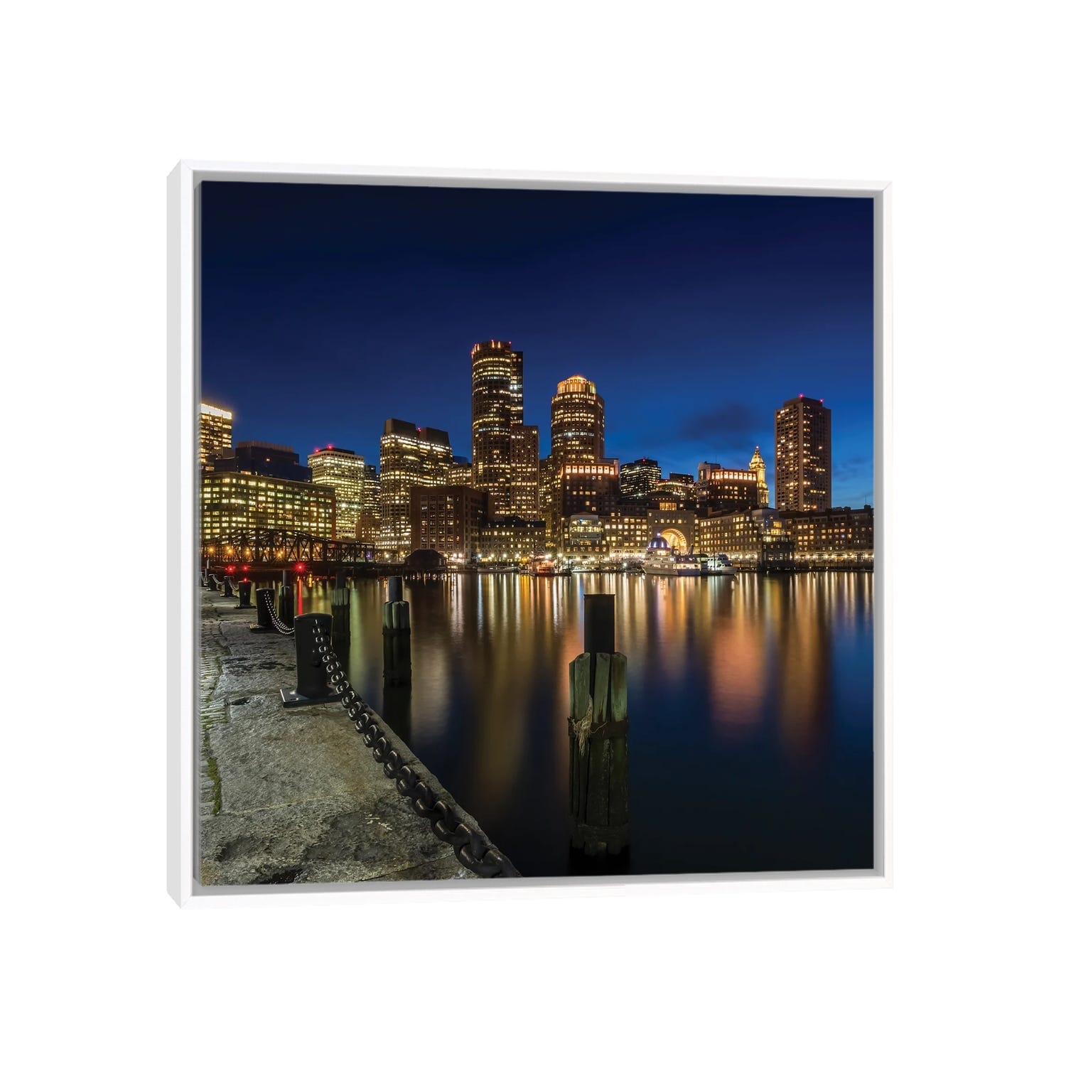 iCanvas "Boston Fan Pier Park & Skyline in the Evening" by Melanie Viola Framed
