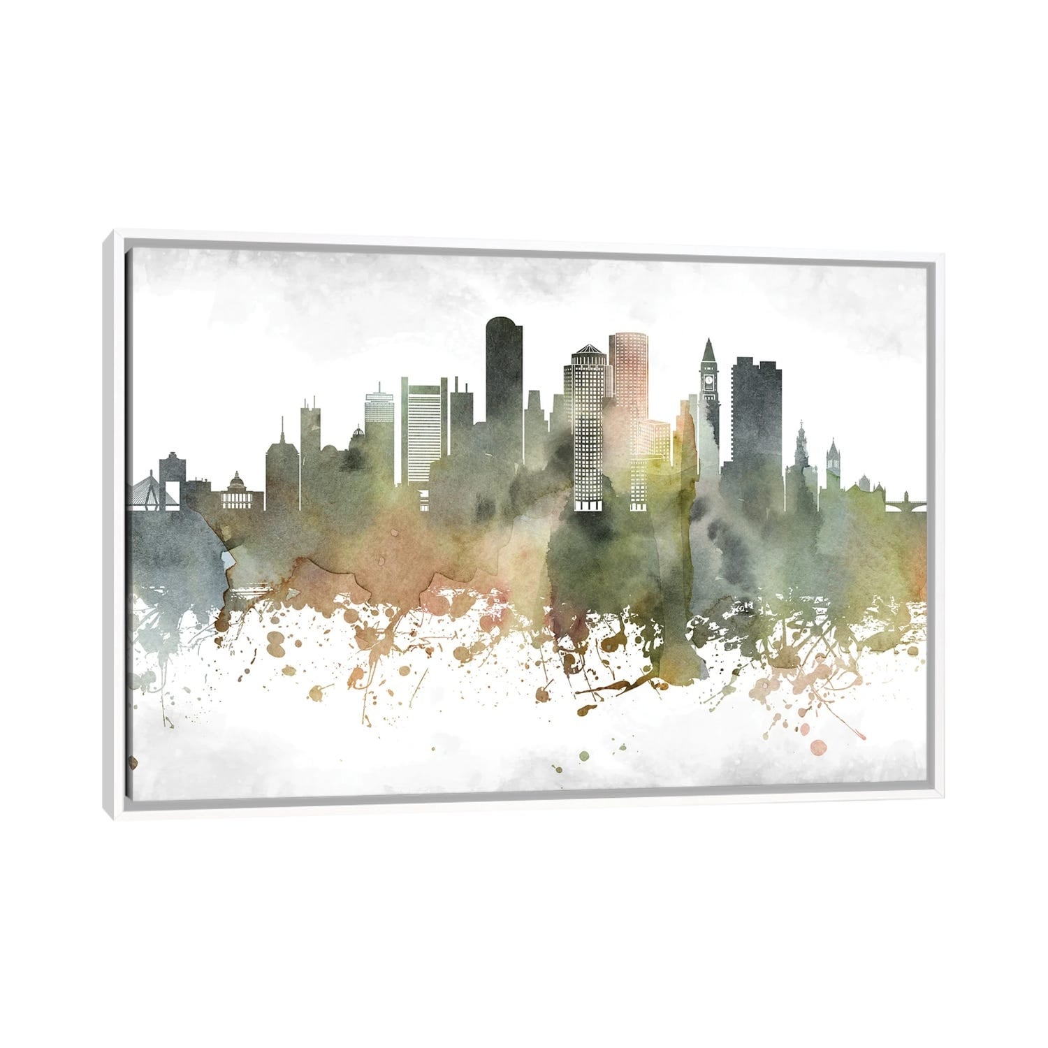 iCanvas "Boston Skyline" by Ayse Deniz Akerman Framed