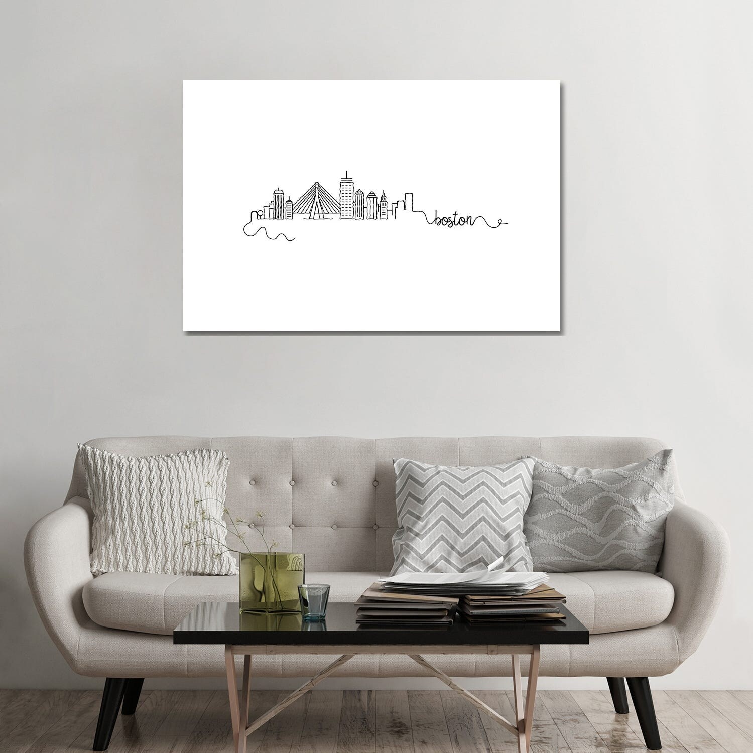 iCanvas "Boston Black & White Drops Skyline" by WallDecorAddict Framed
