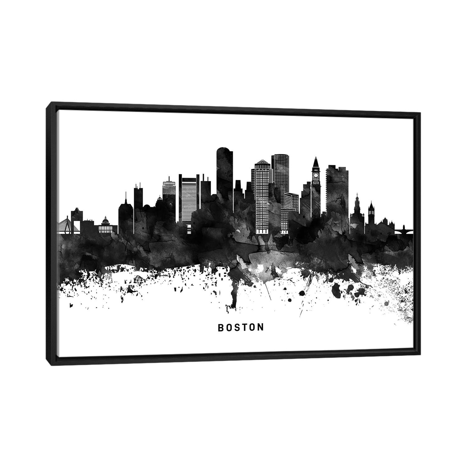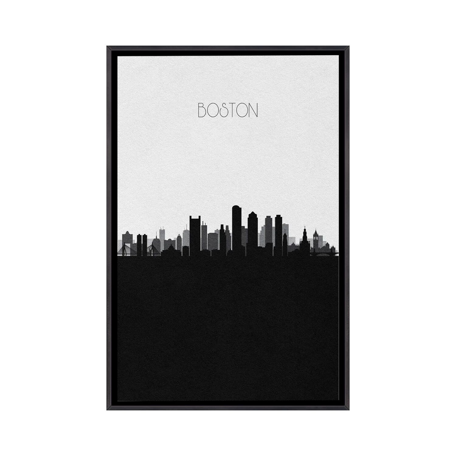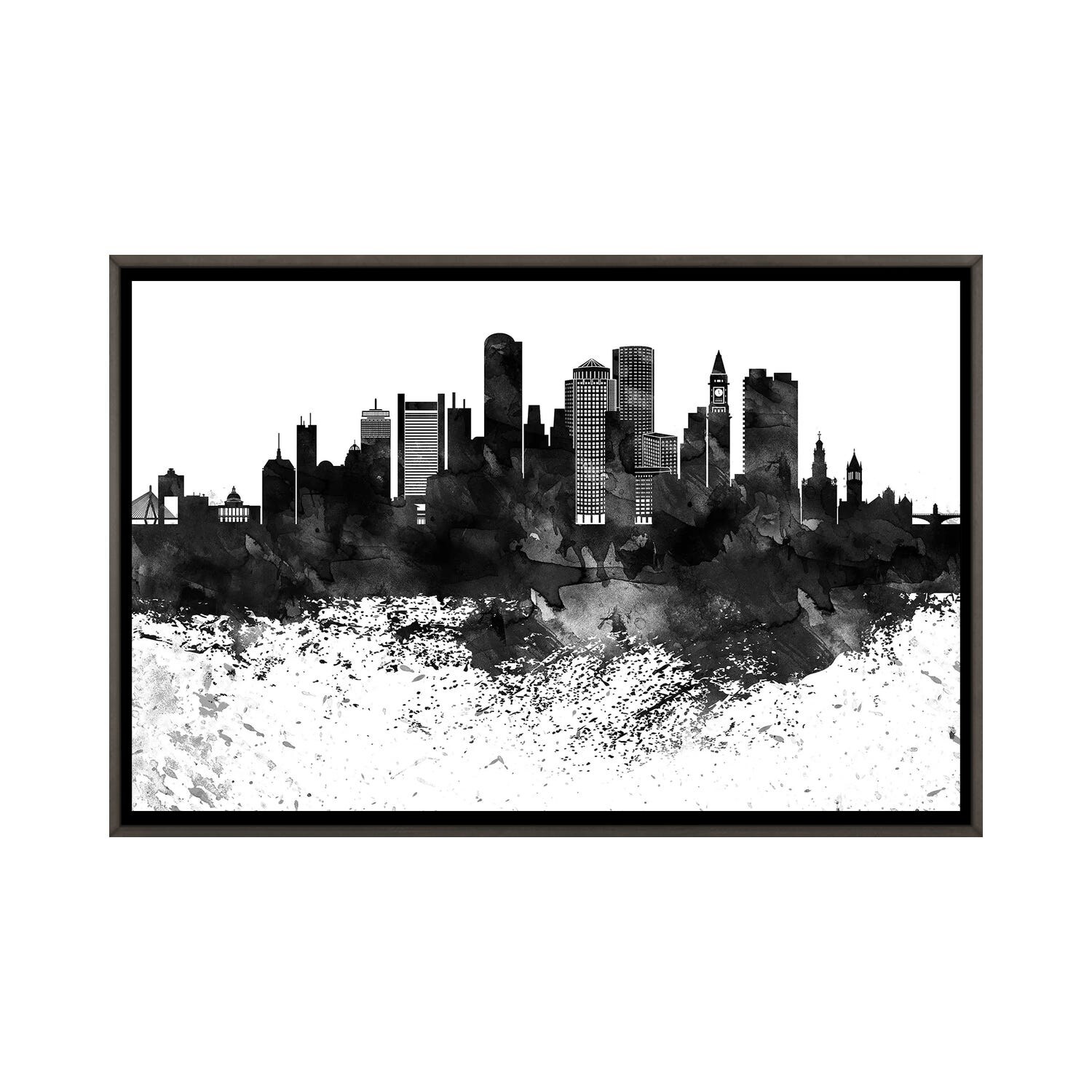 iCanvas "Boston Skyline Black & White" by WallDecorAddict Framed Canvas Print