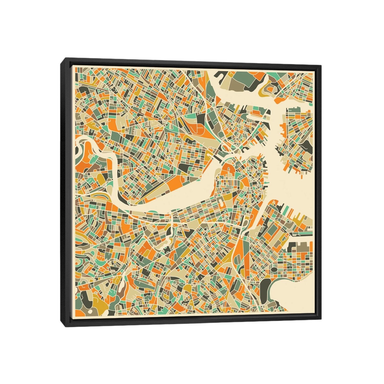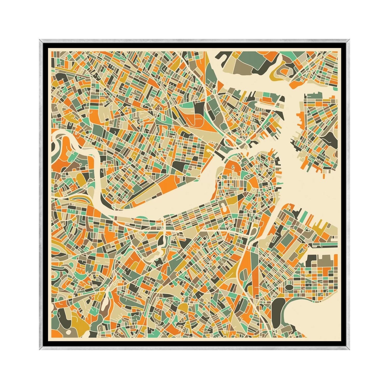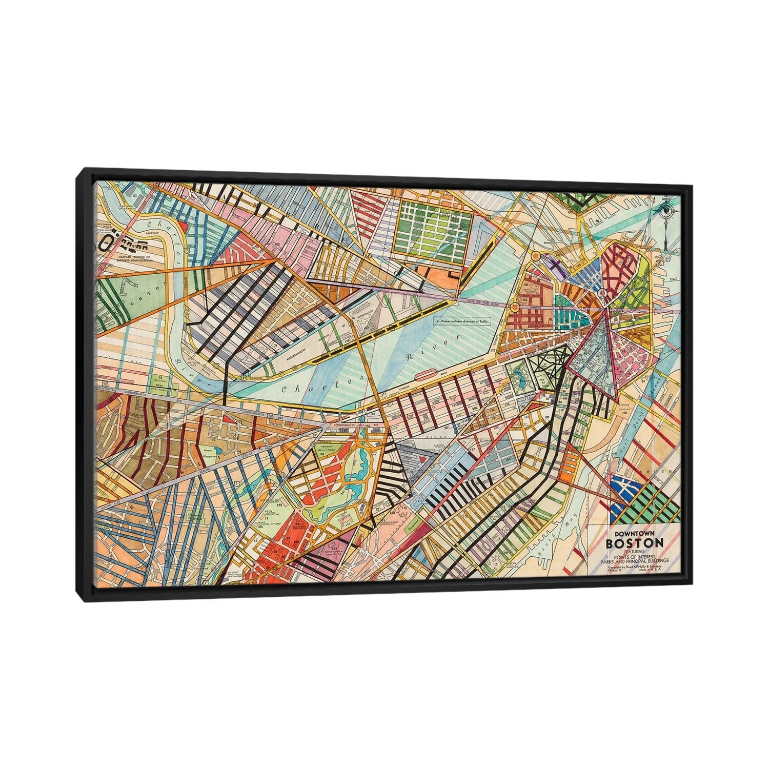 iCanvas "Abstract City Map of Boston" by Jazzberry Blue Framed