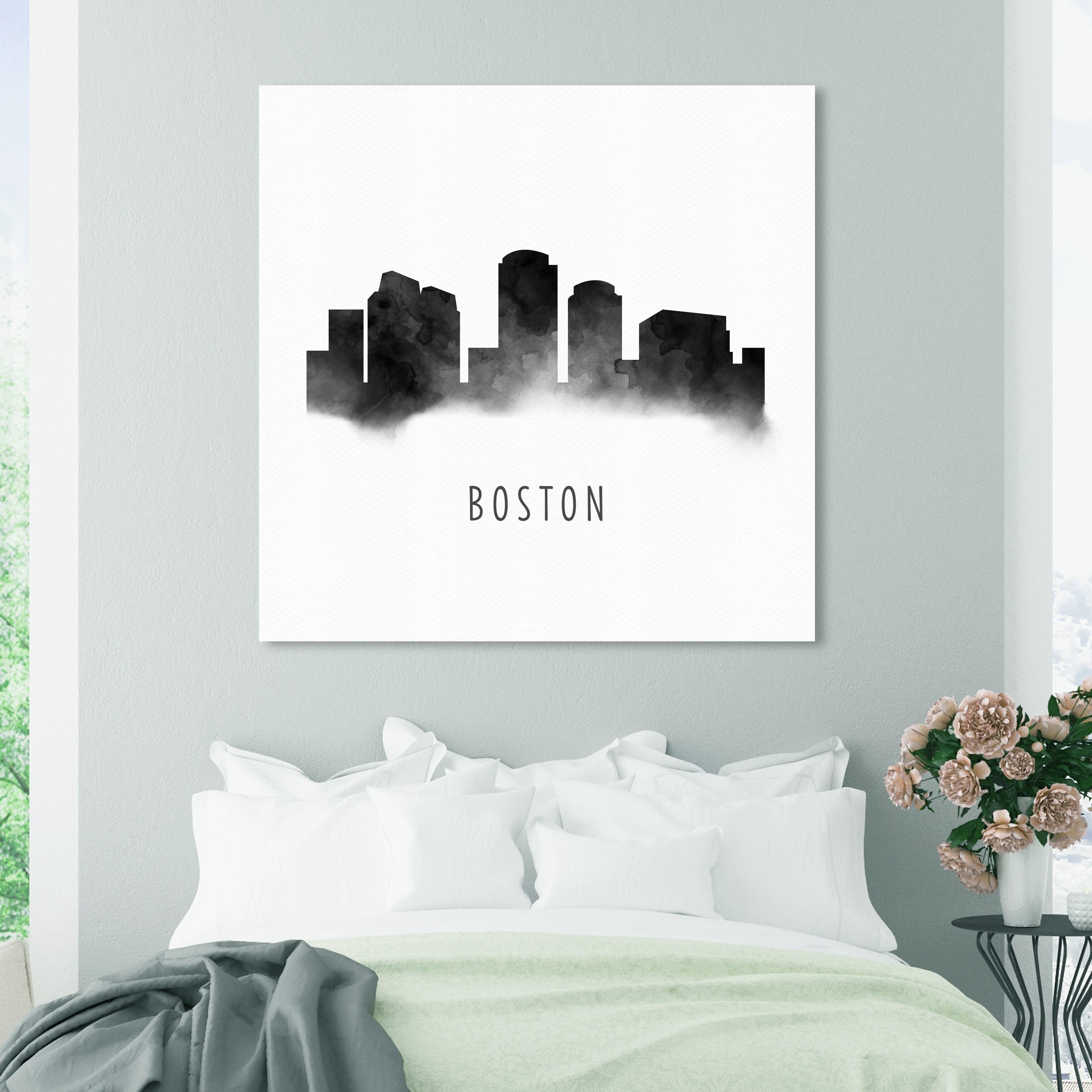 Oliver Gal 'Boston Watercolor' Cities and Skylines Wall Art Canvas Print - Black, White