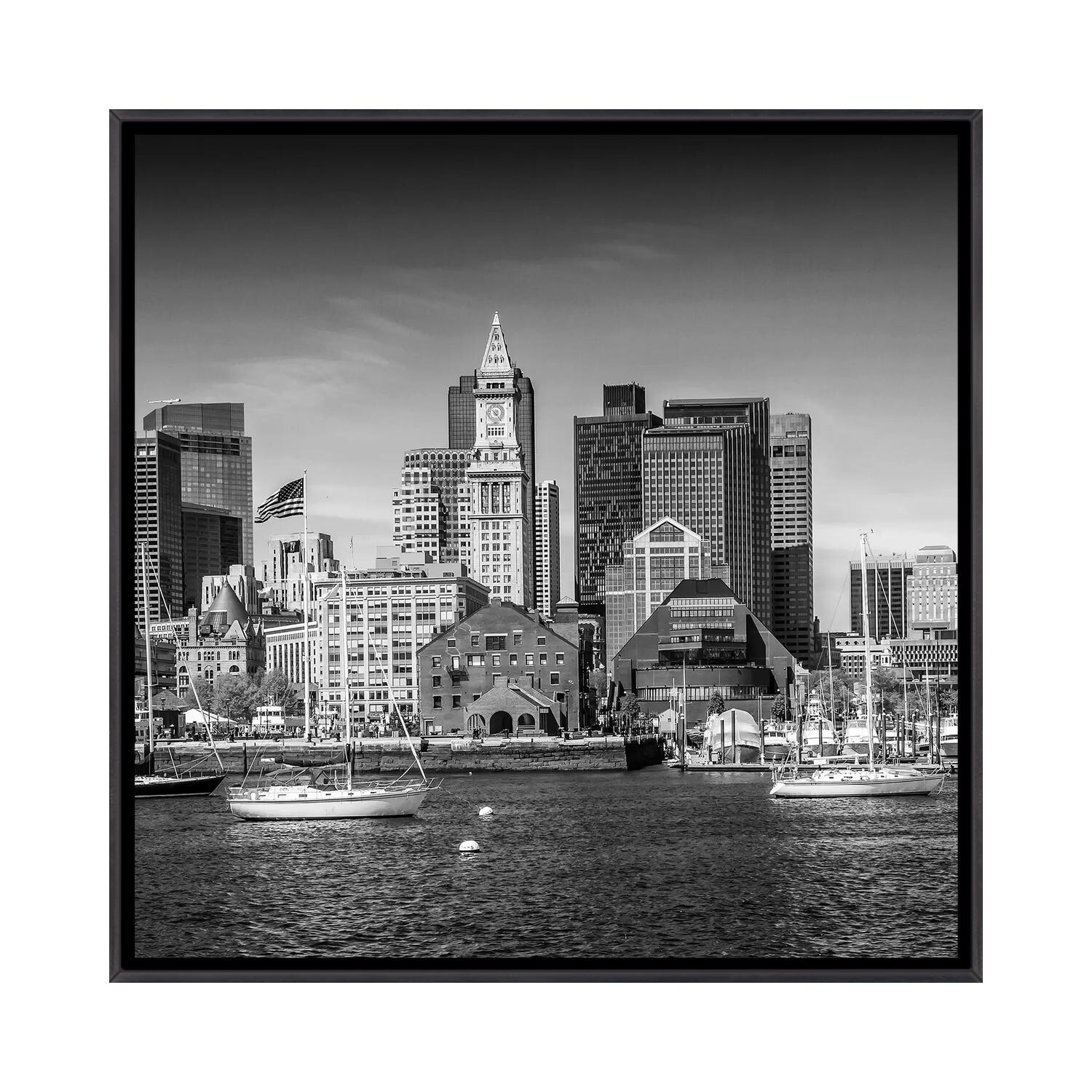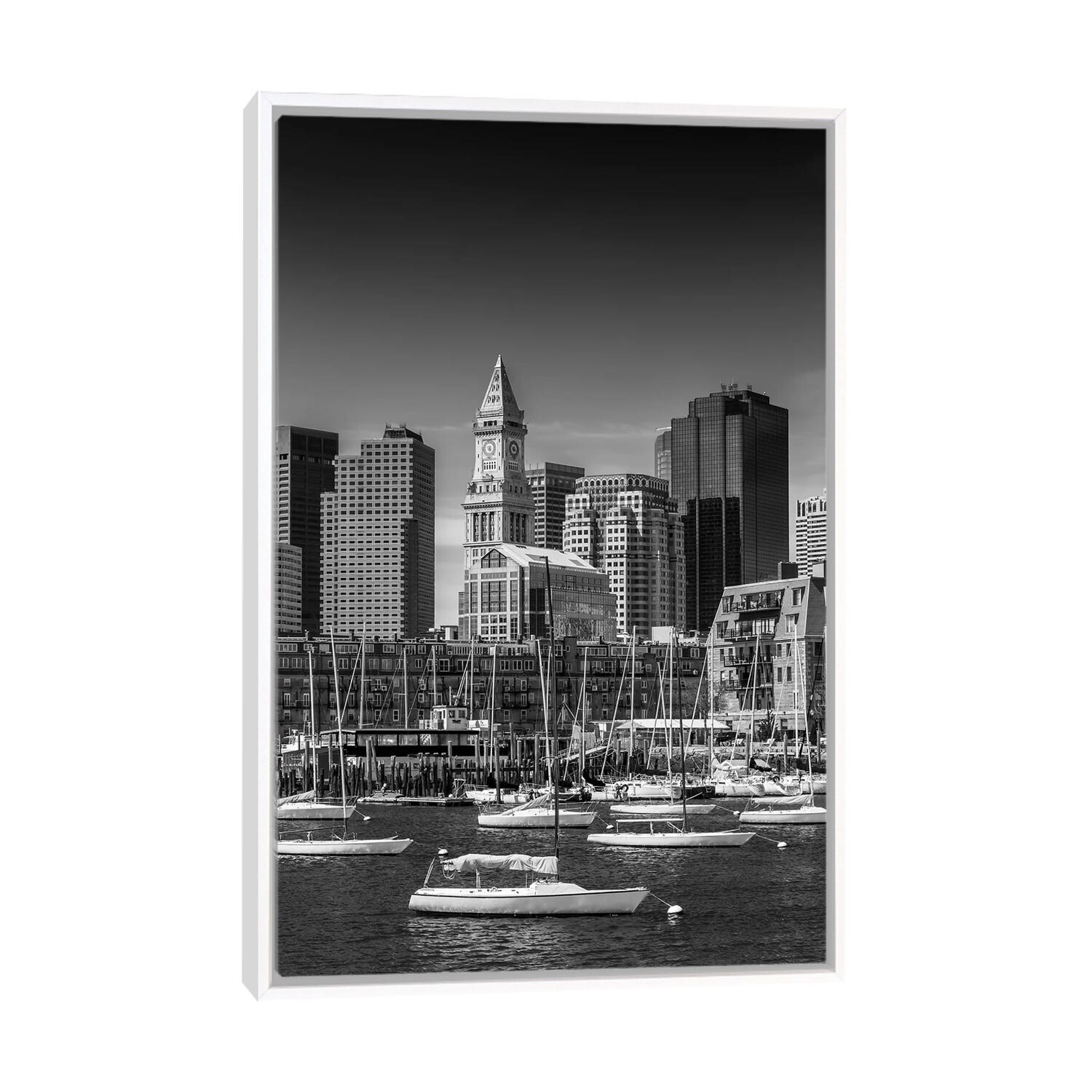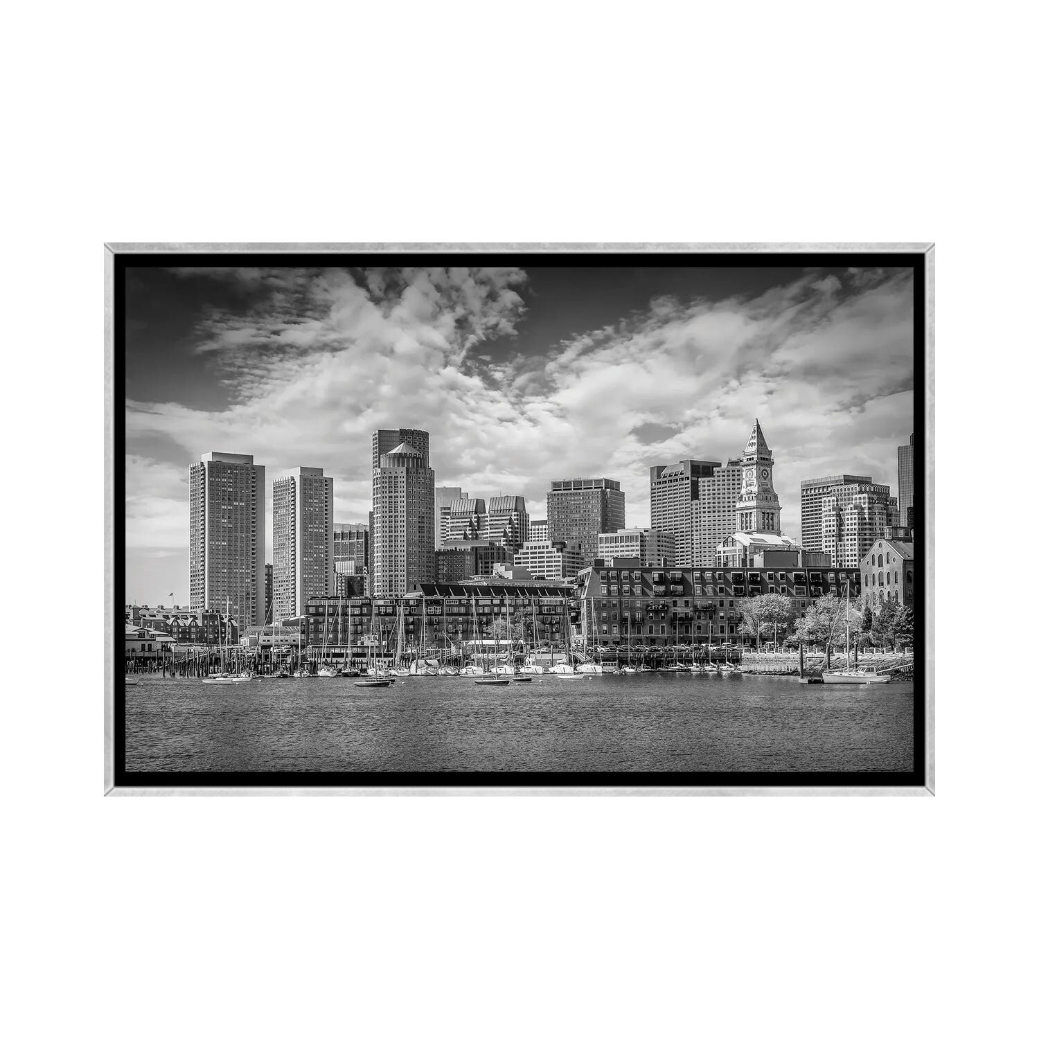 iCanvas "Boston Skyline North End & Financial District Monochrome" by Melanie Viola Framed