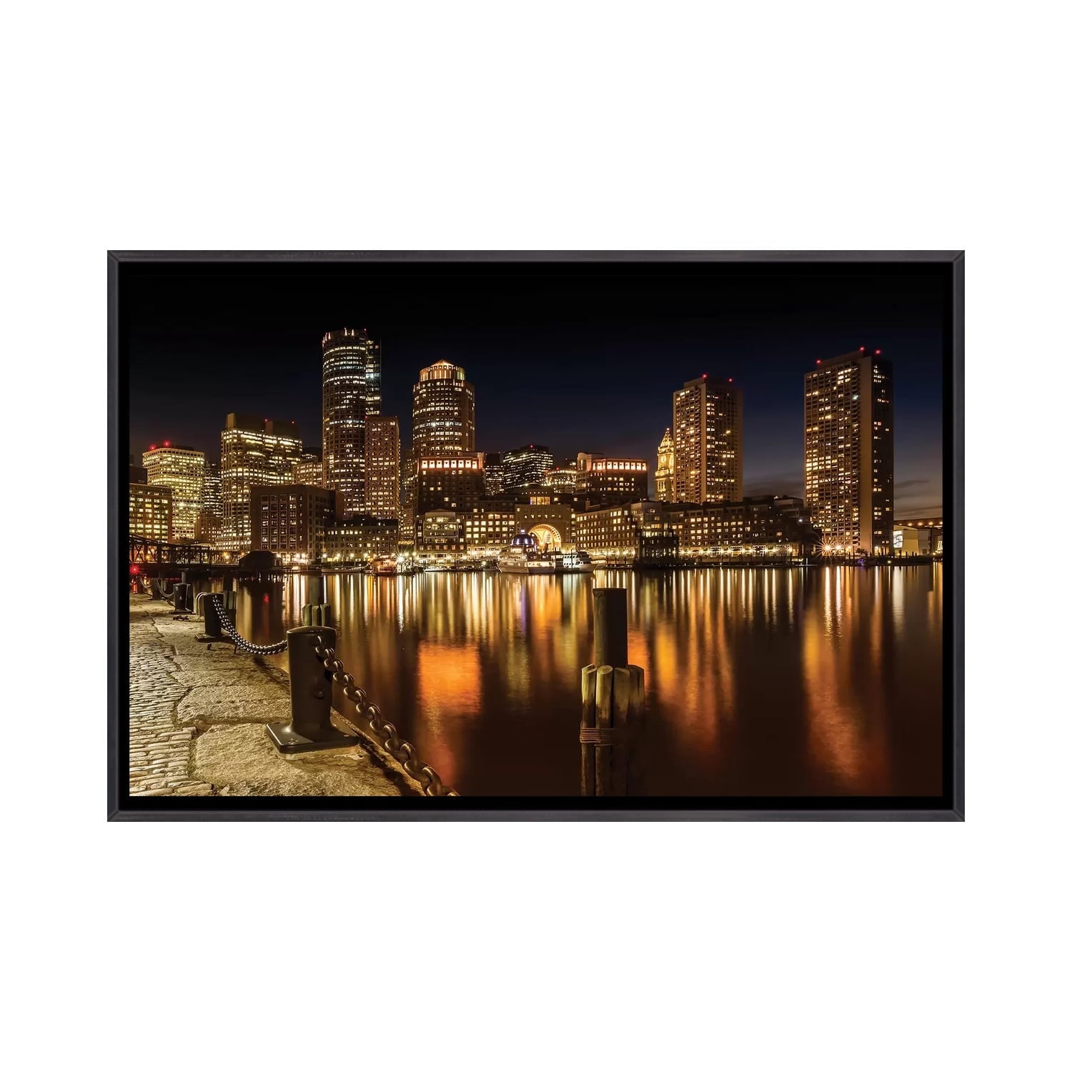 iCanvas "Boston Fan Pier Park & Skyline At Night" by Melanie Viola Framed
