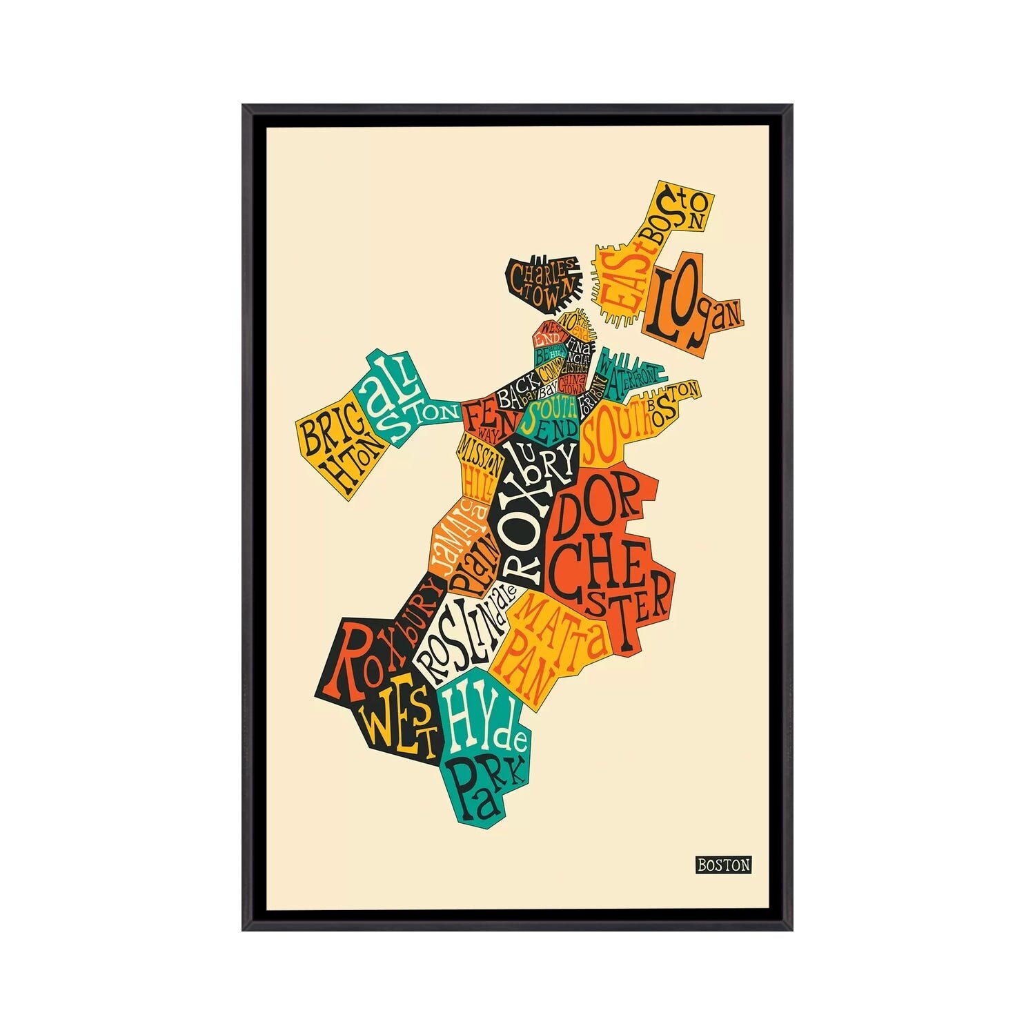 iCanvas "Modern Map of Boston" by Nikki Galapon Framed Canvas Print