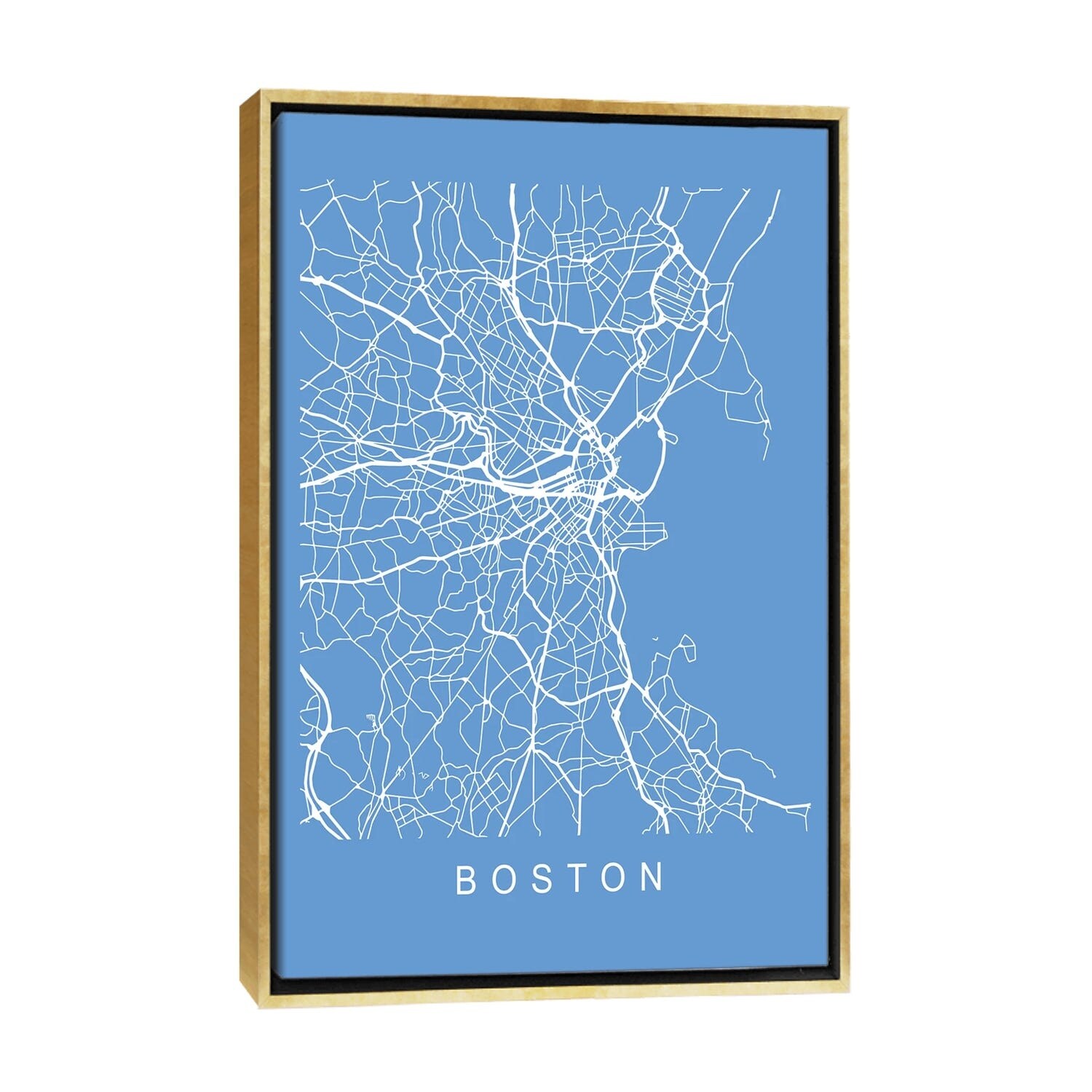 iCanvas "Boston Map Blueprint" by Pixy Paper Framed Canvas Print