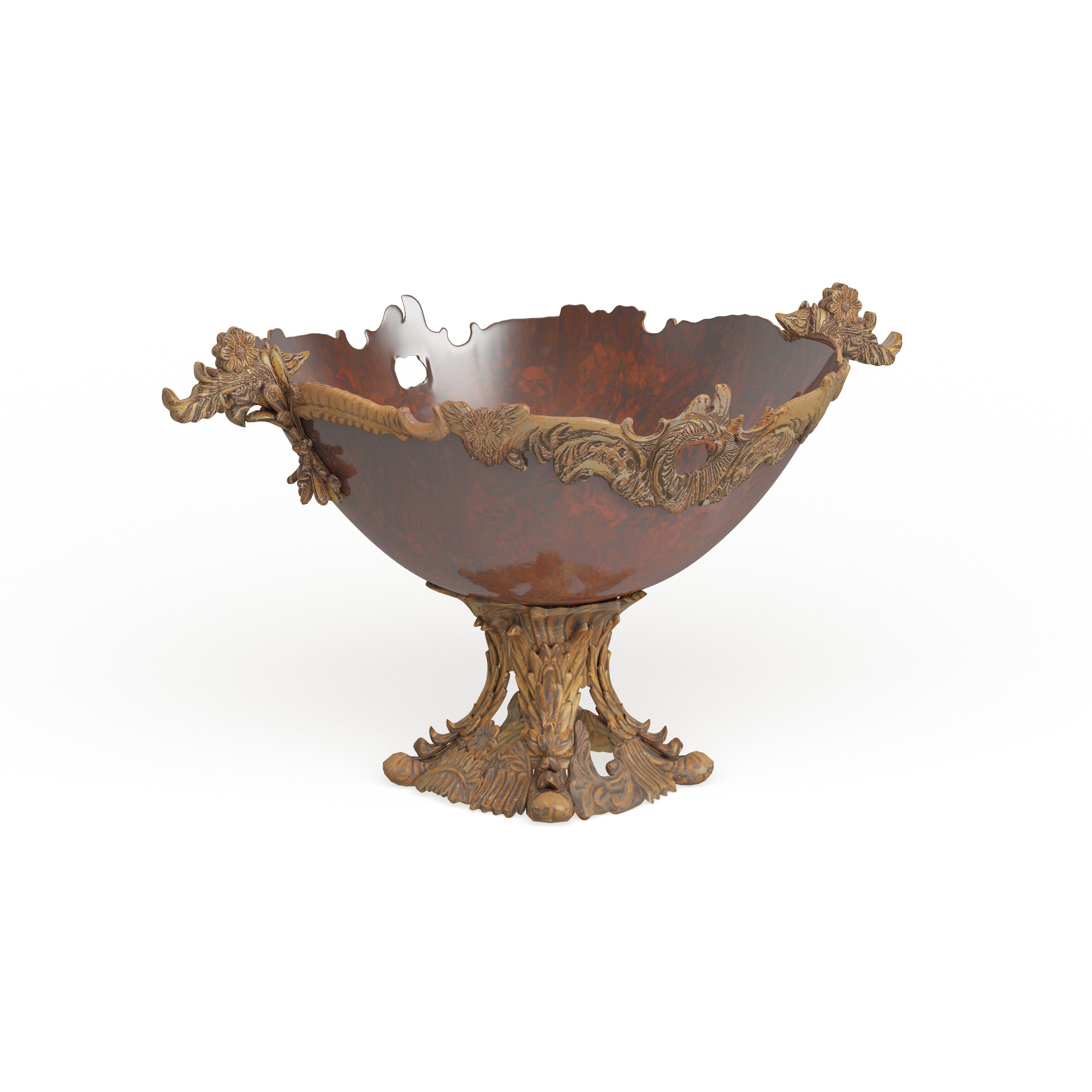 Decorative Cast Aluminum Footed Bowl, Gold Finish