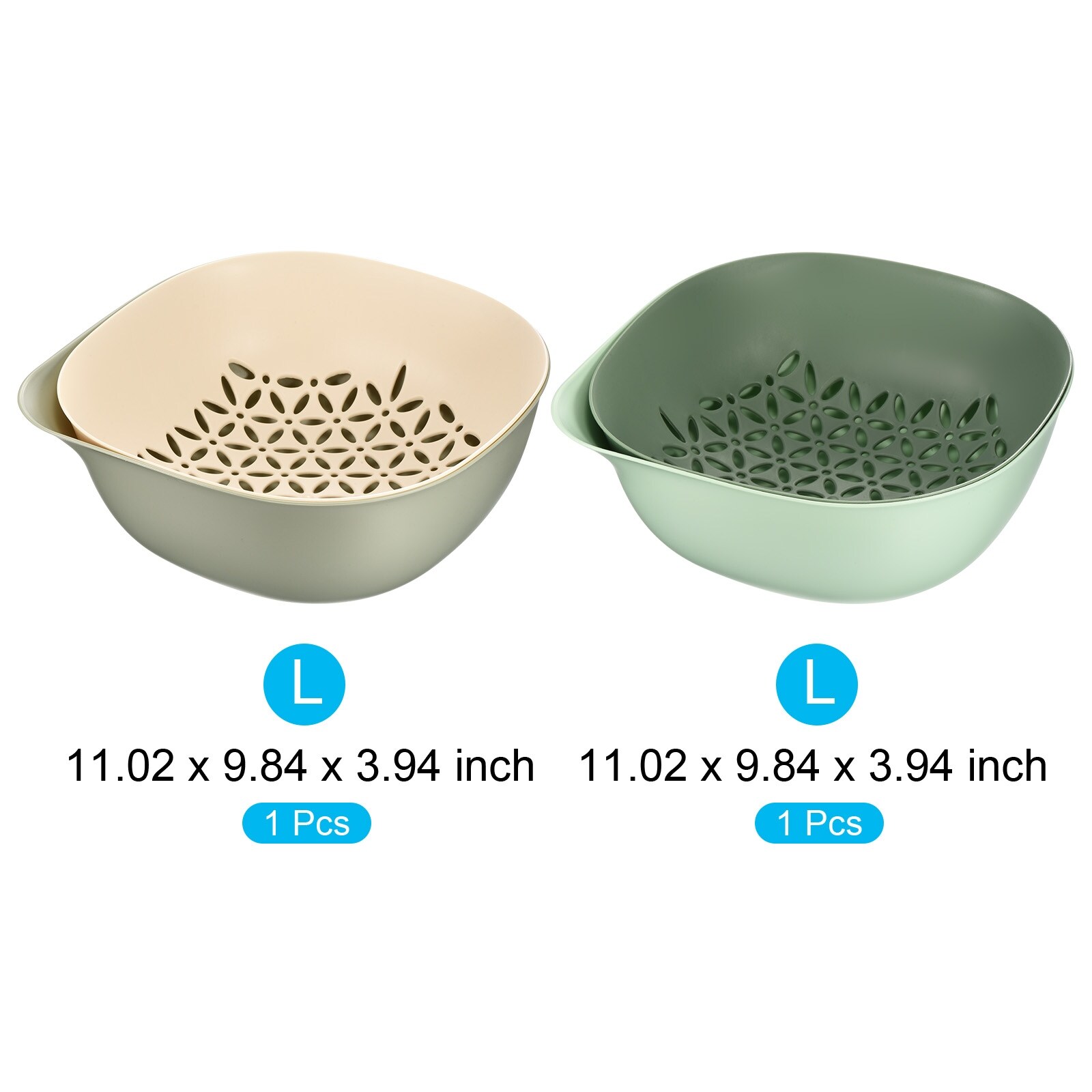 Kitchen Food Strainer Colander Bowl Set 2PCS, Washing Bowl & Strainer - Green+Light Green