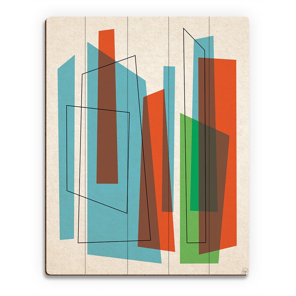 'Broken Skyscrapers Blue & Green' Wood Wall Art
