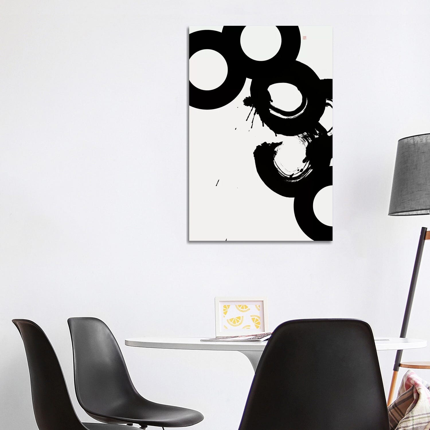 'Broken Cycle' White on Black Wall Art on Canvas