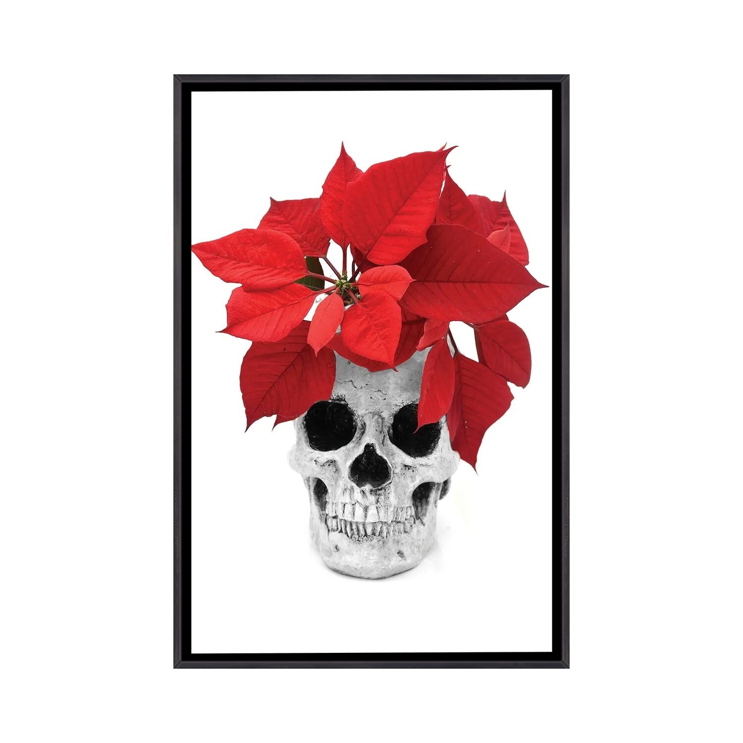 iCanvas "Skull & Poinsetta Black & White" by Jonathan Brooks Framed
