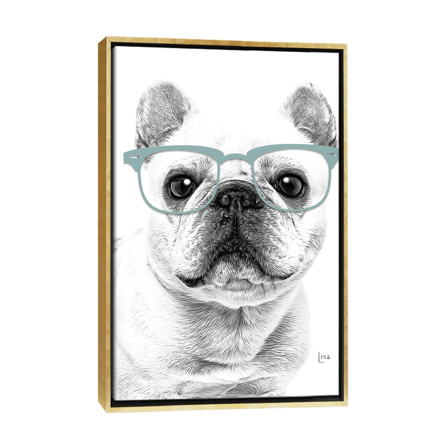 iCanvas "French Bulldog With Glasses" by Printable Lisa's Pets Framed