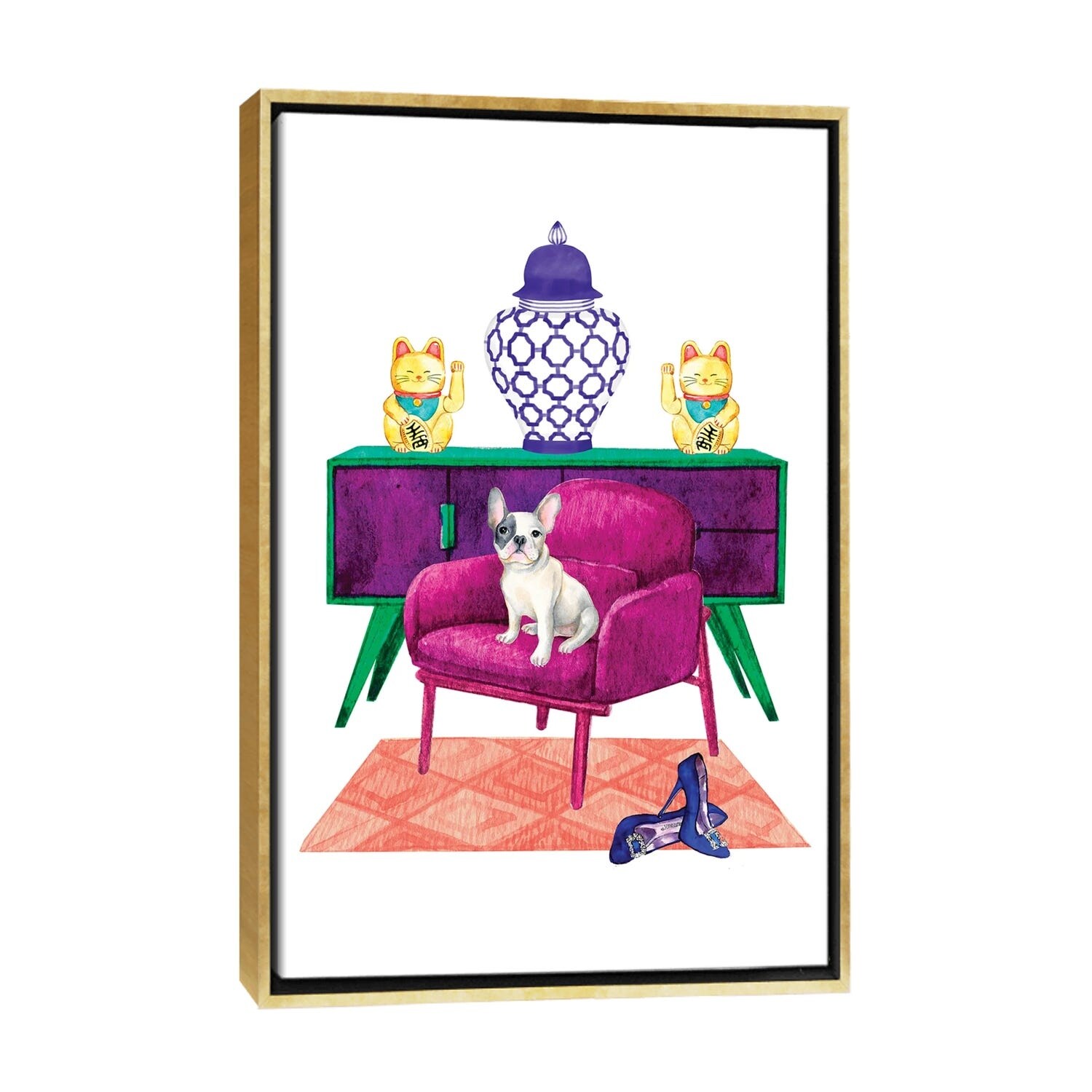 iCanvas "French Bulldog in Living Room" by Jania Sharipzhanova Framed Canvas Print