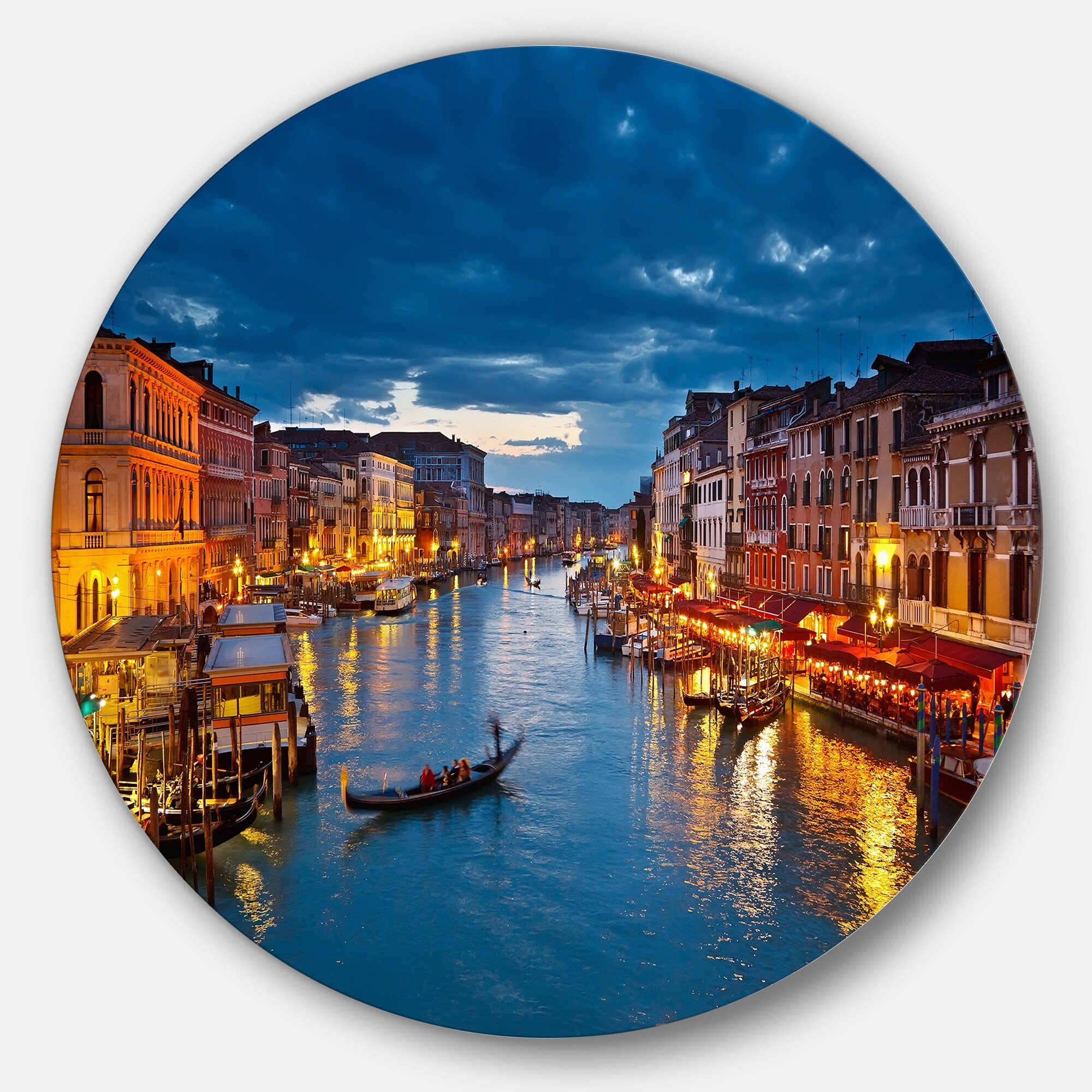 Designart 'Grand Canal at Night Venice' Cityscape Photo Disc Metal Wall Art