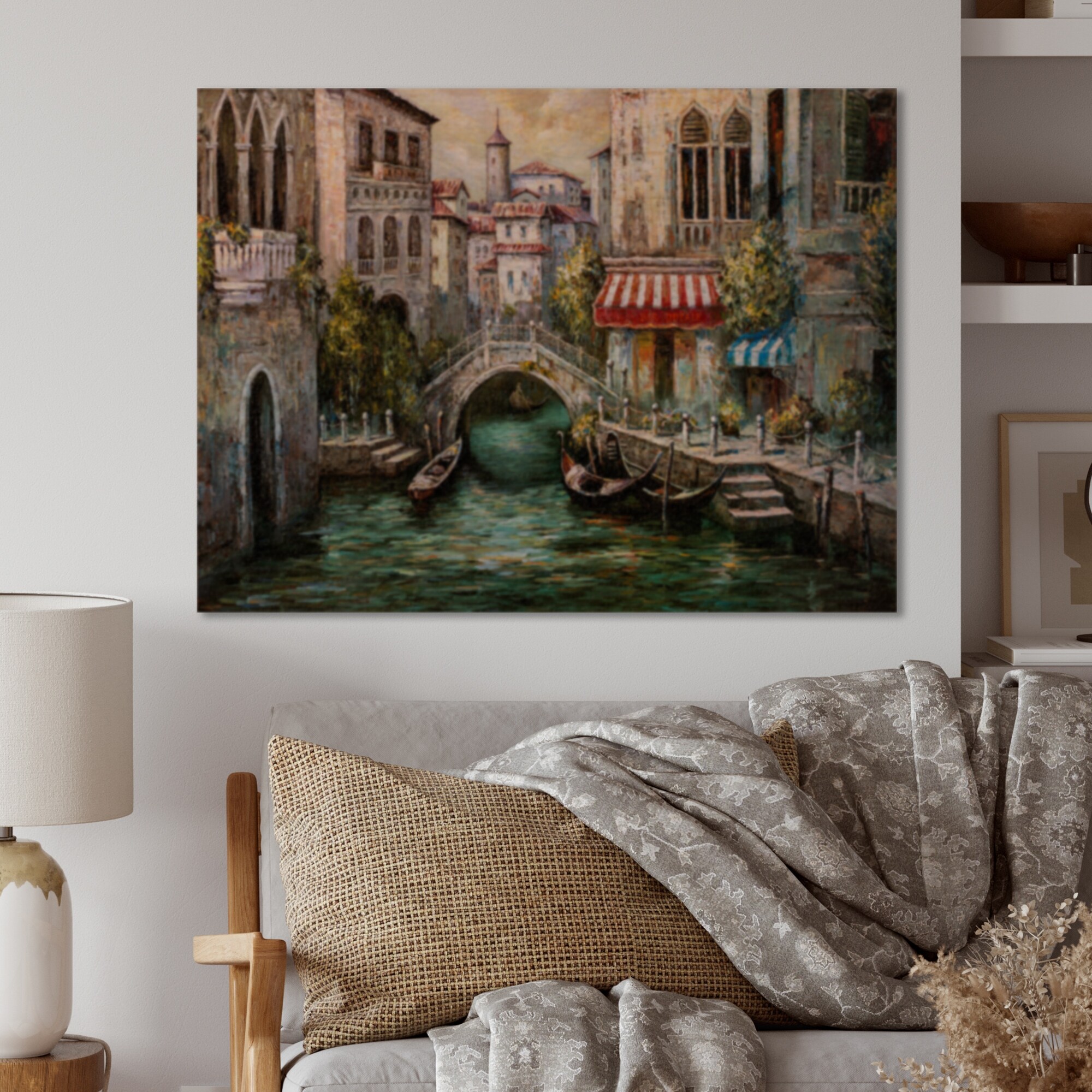 Designart "Canal In Venice" French Country Framed Canvas Wall Decor