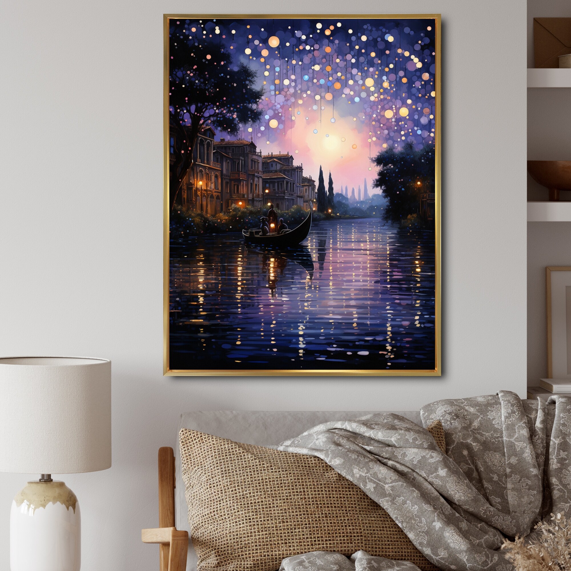 Designart "Purple Canal Whimsy Pointillism" Canals Framed Canvas Prints