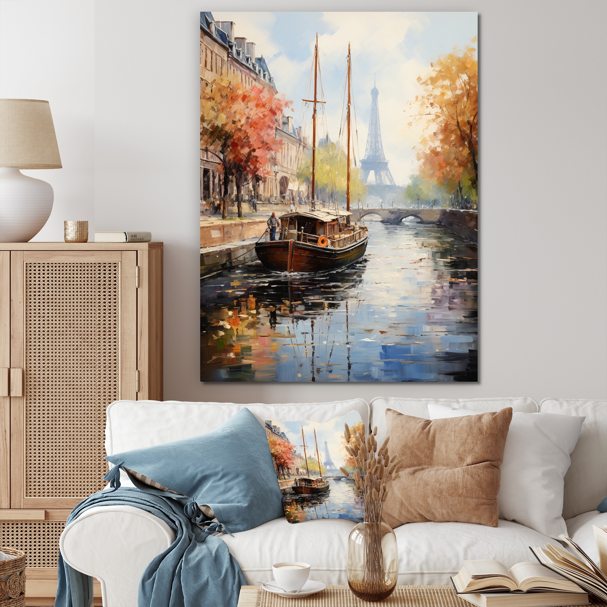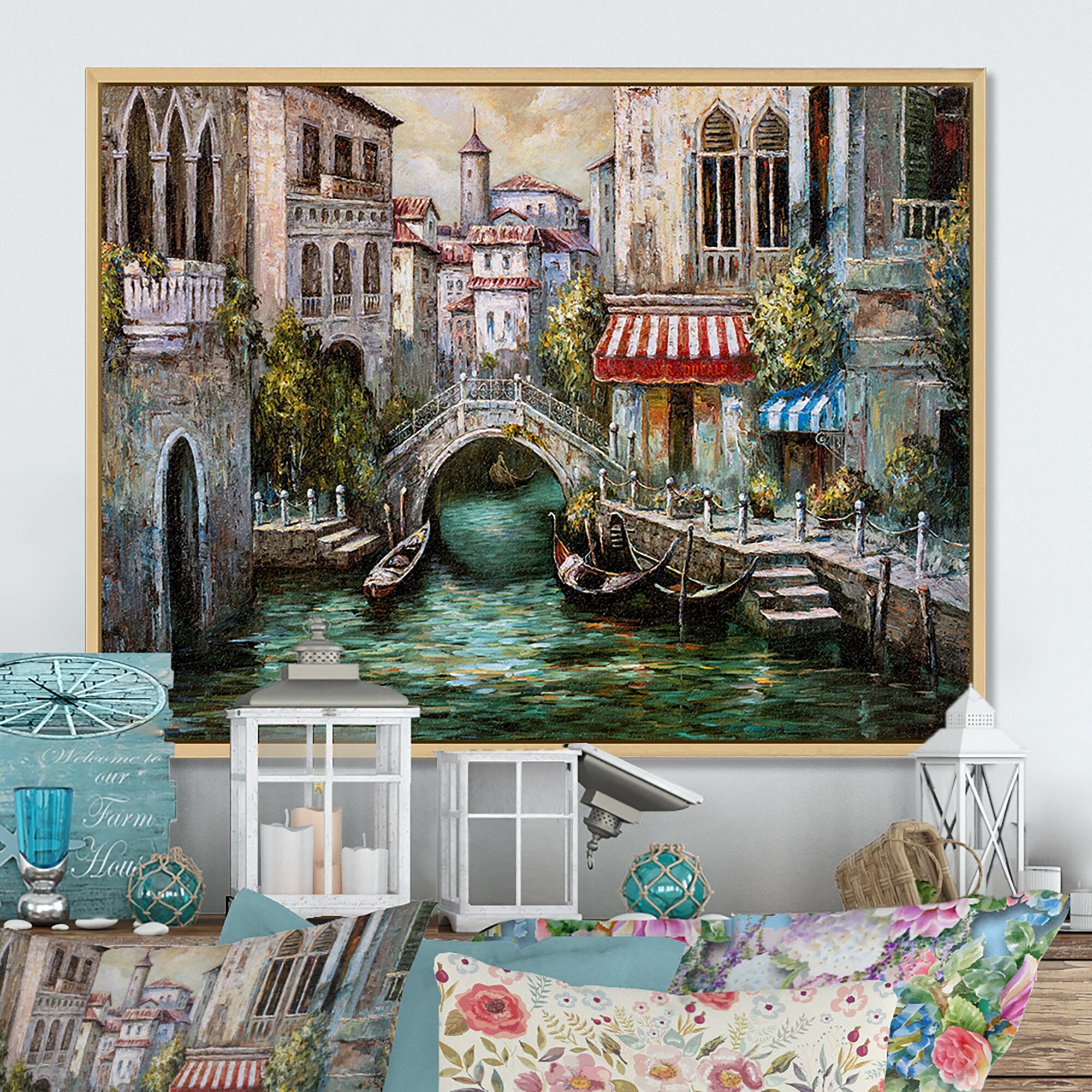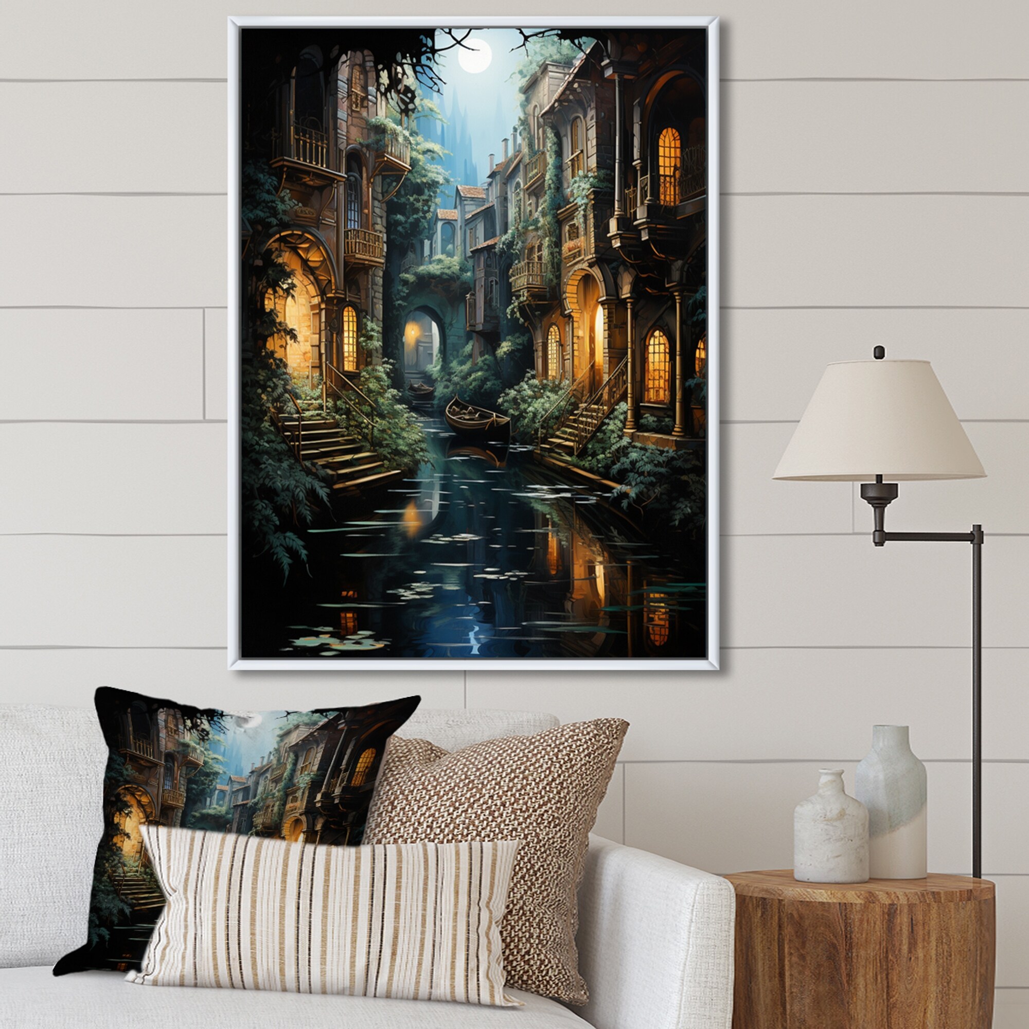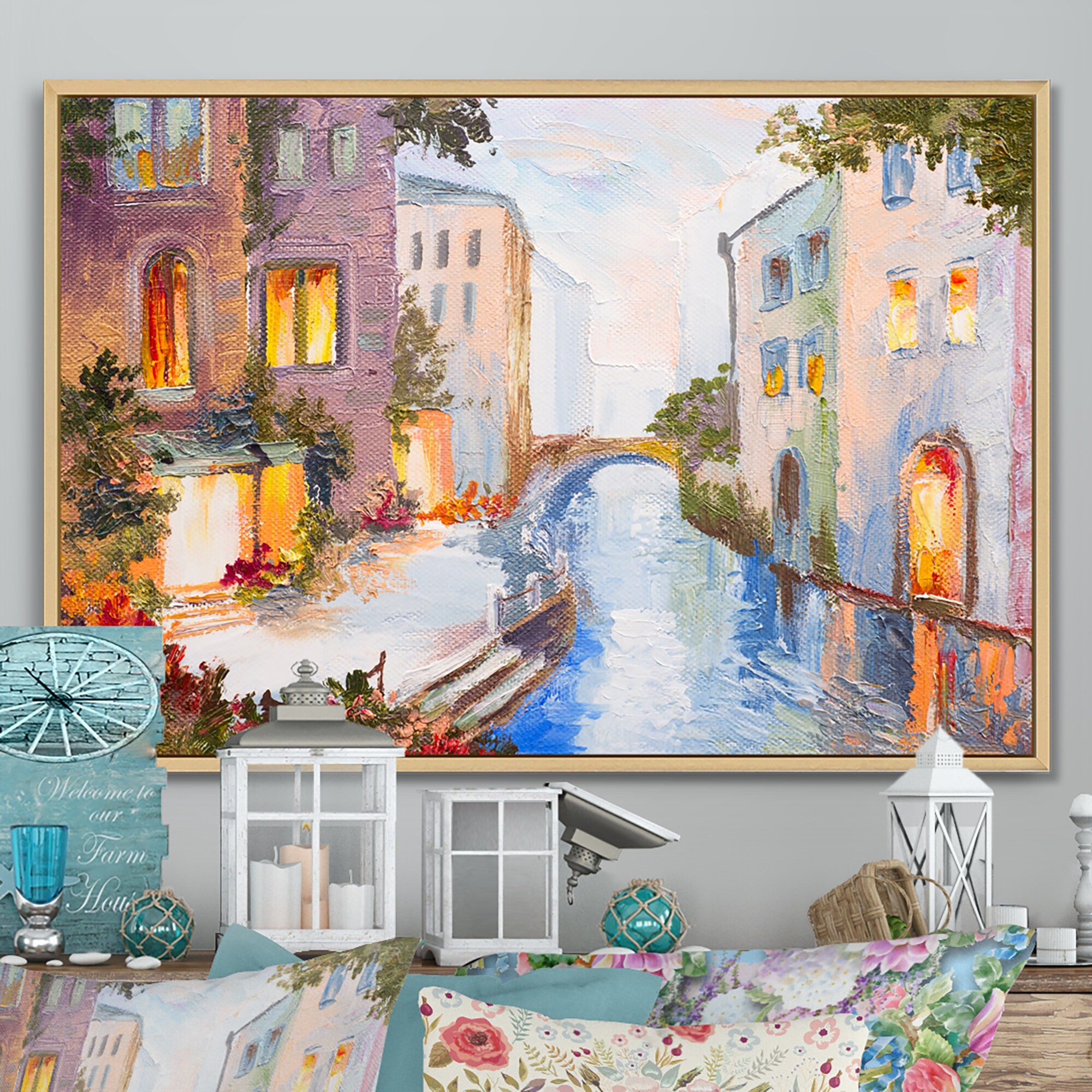 Designart "Summer Canal in Venice" French Country Framed Canvas Wall Decor