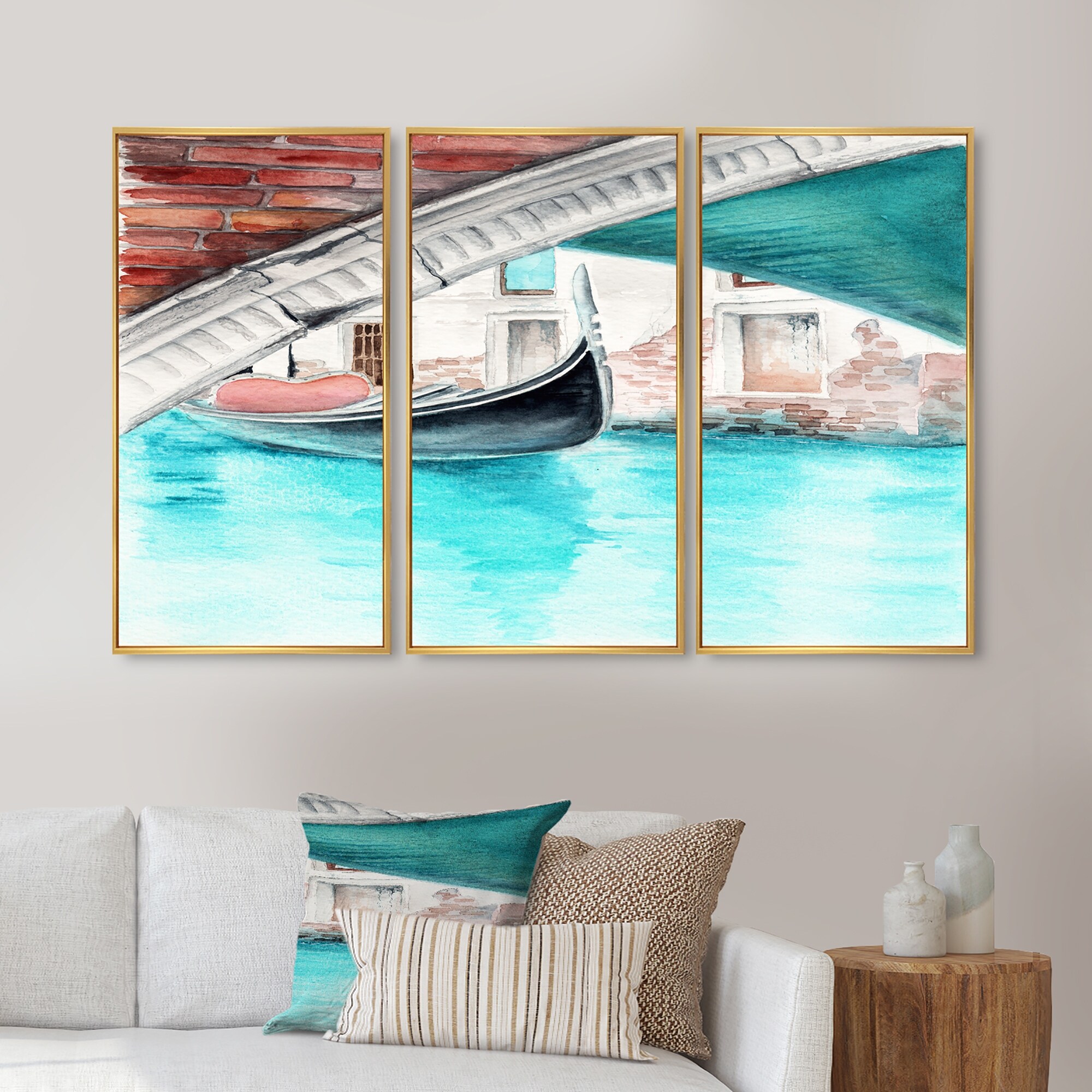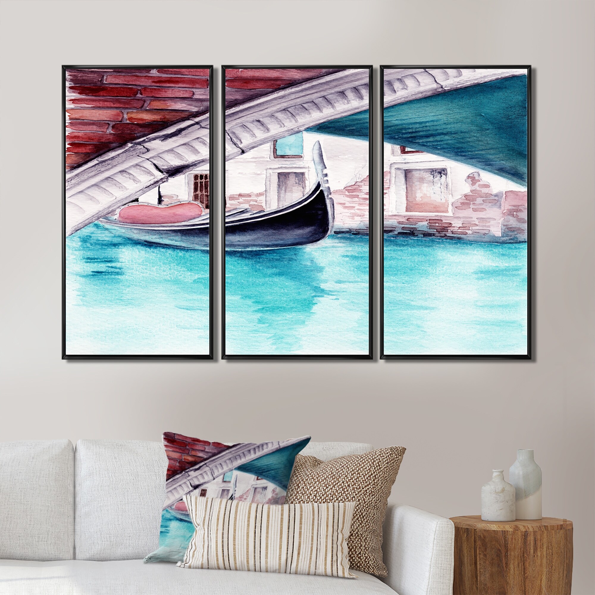 Designart "The Venetian Canal With A Floating Gondola" Lake House Framed Wall Art Set of 3 - 4 Colors of Frames