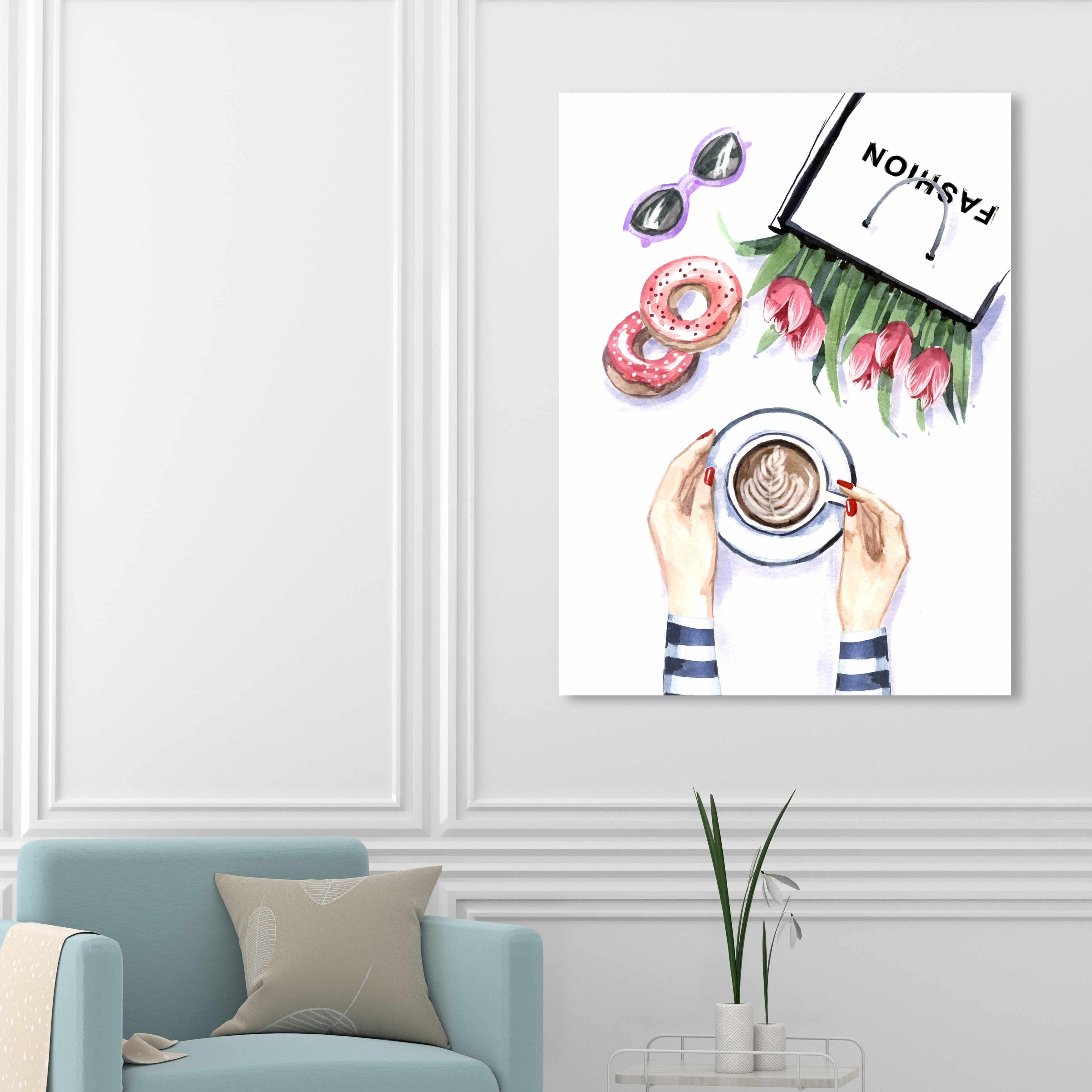 Wynwood Studio Fashion and Glam Coffee and donut time Pink and Modern & Contemporary Wall Art Canvas Print