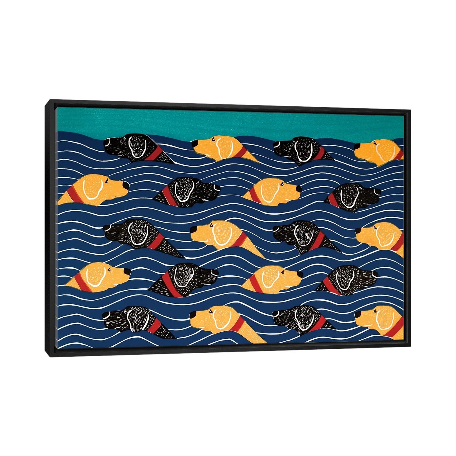 iCanvas "Beach Cover Sheet, Yellow Black" by Stephen Huneck Framed Canvas Print