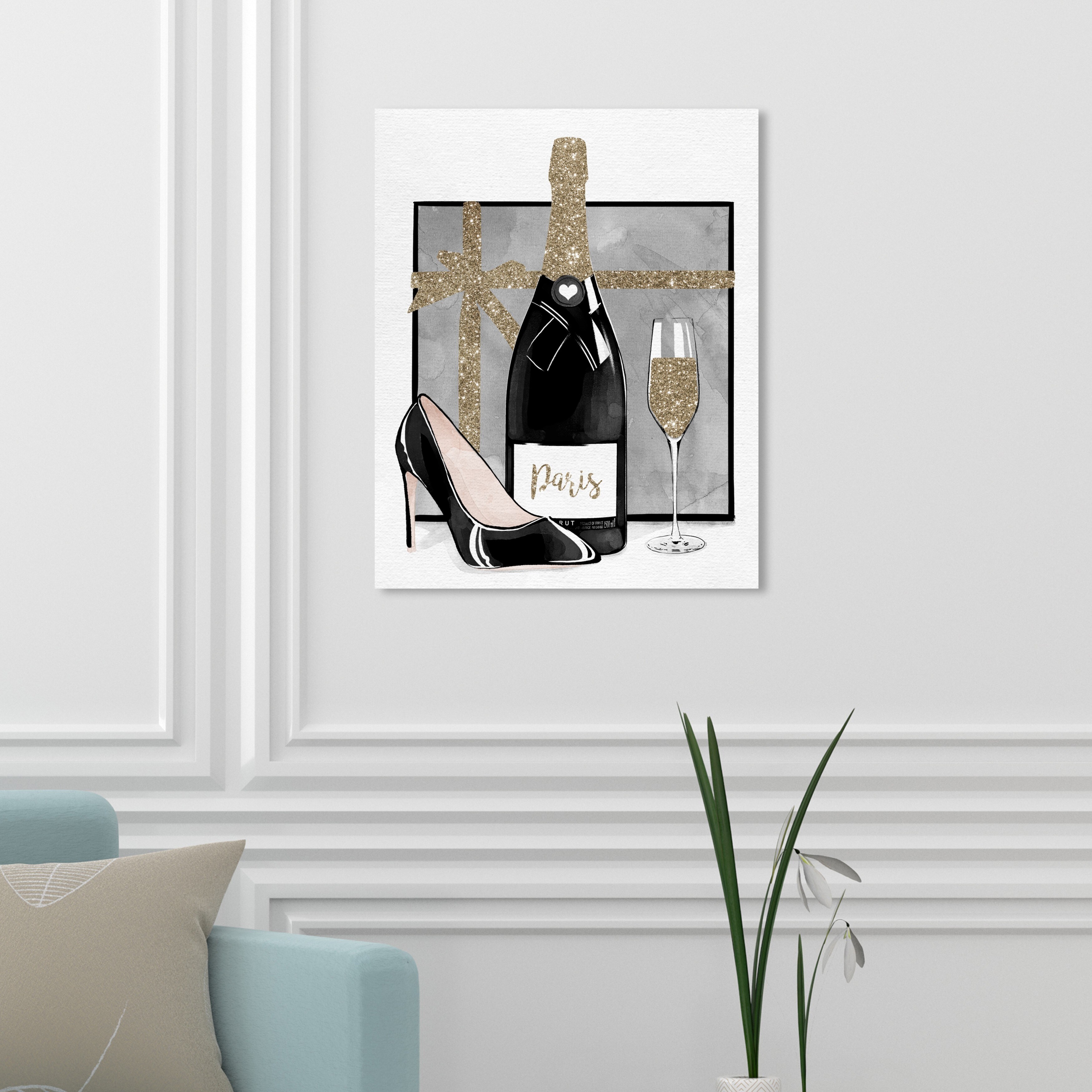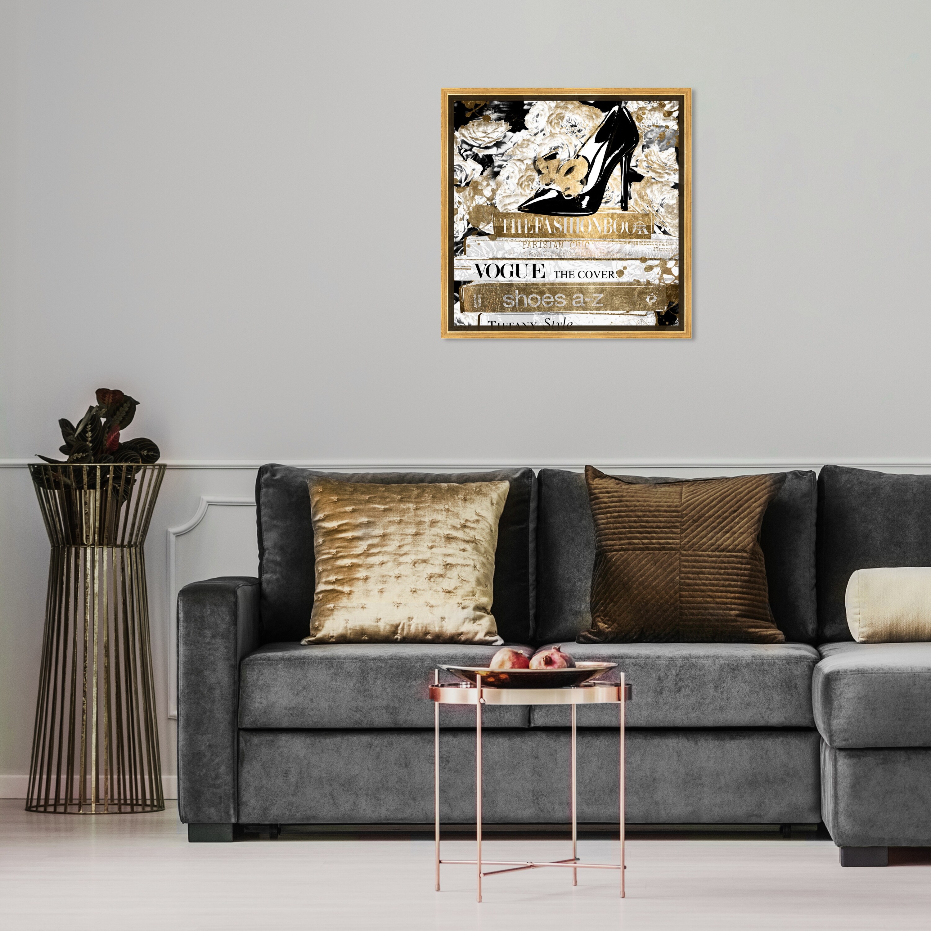Oliver Gal 'Drinks and Glam Glitter' Fashion and Glam Wall Art Canvas Print Shoes - Gold, Gray