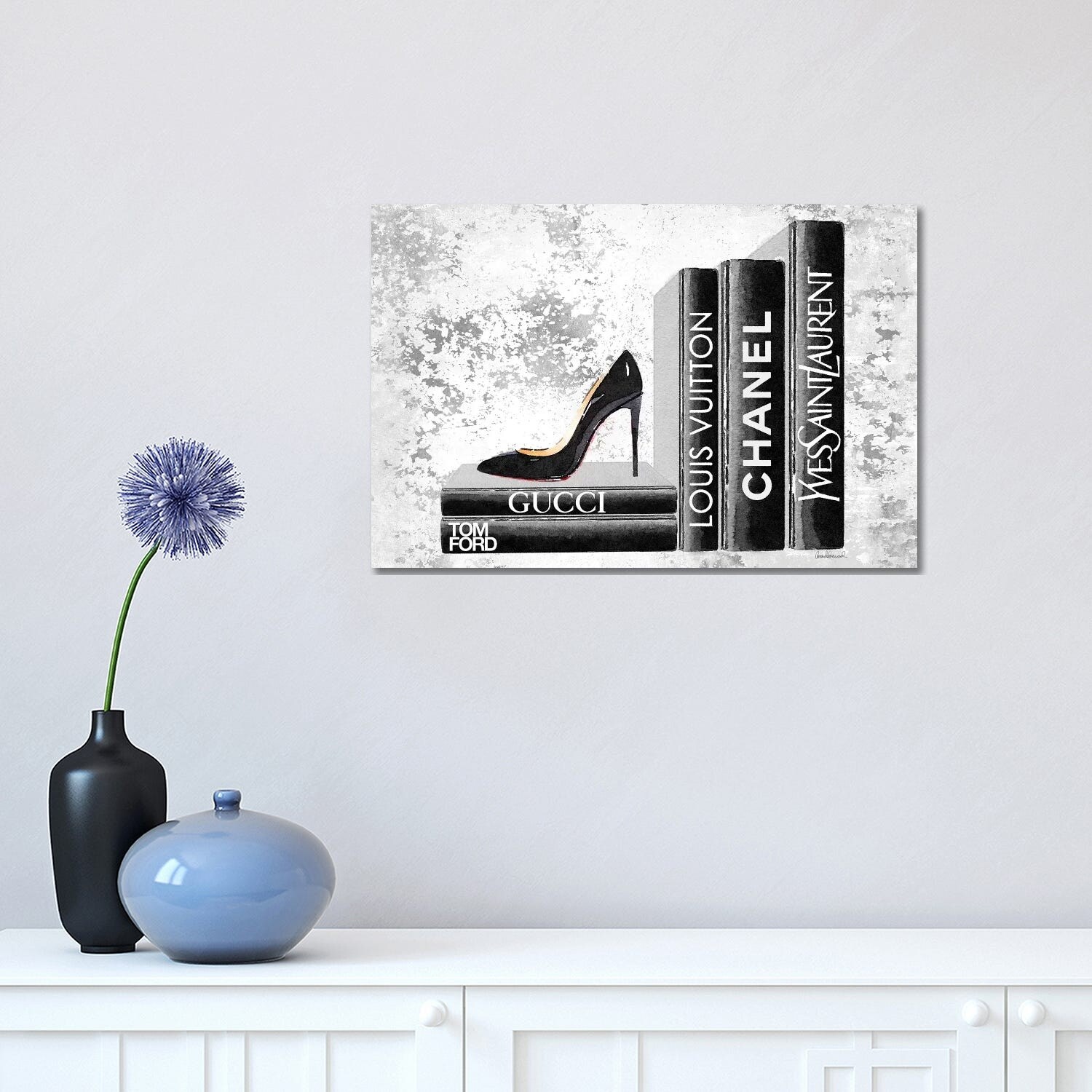 iCanvas "Books Of Fashion, Grey, Shoes, Grey Grunge" by Amanda Greenwood