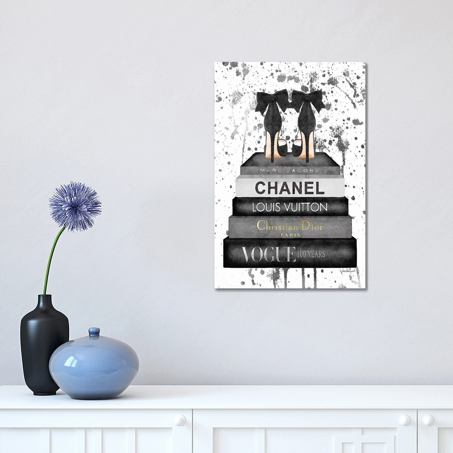 iCanvas "Fashion Bookstack Grey Bow Shoes & Ink" by Amanda Greenwood Canvas Print
