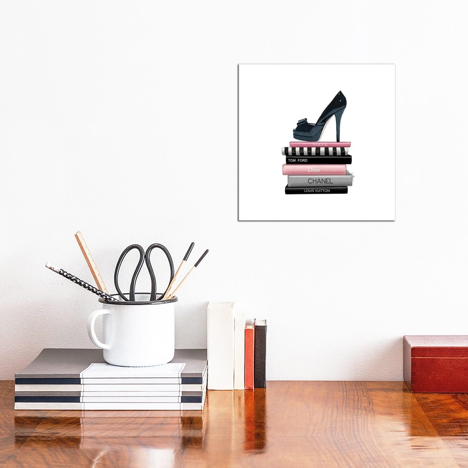 iCanvas "Stack Of Teal Fashion Books With Shoes" by Amanda Greenwood