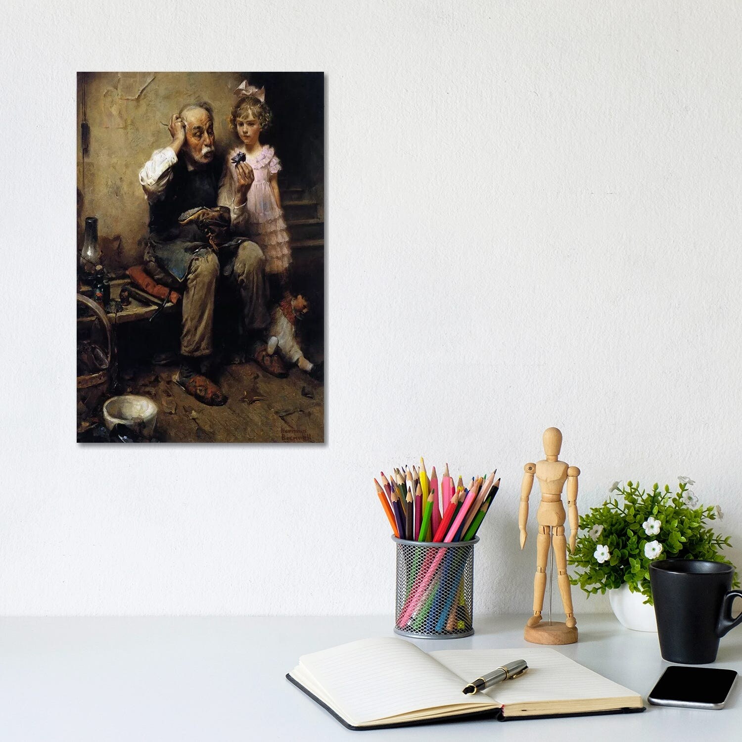 iCanvas "Cobbler Studying Doll's Shoe" by Norman Rockwell Canvas Print