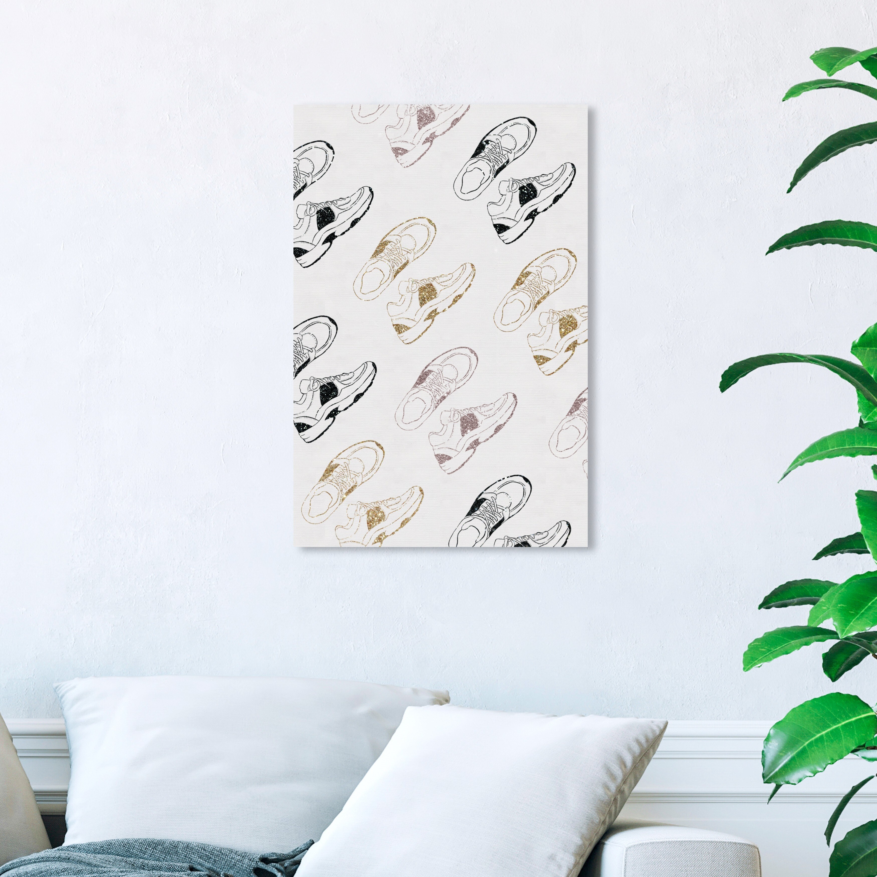 Oliver Gal 'Sneakers for Days' Fashion and Glam Wall Art Canvas Print Shoes - Gold, Black