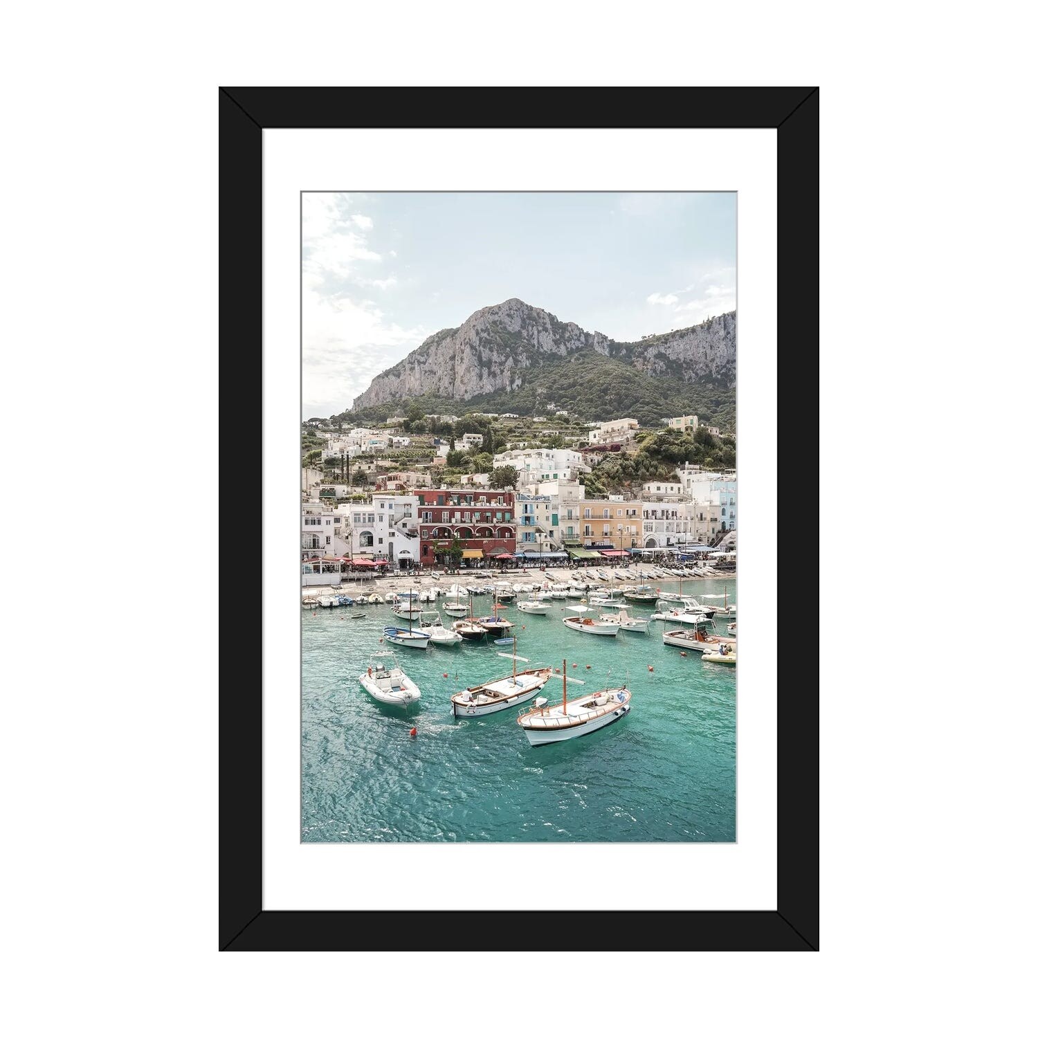 "Boats moored at a port, Capri, Naples, Campania, Italy" Black Float Frame Canvas Art